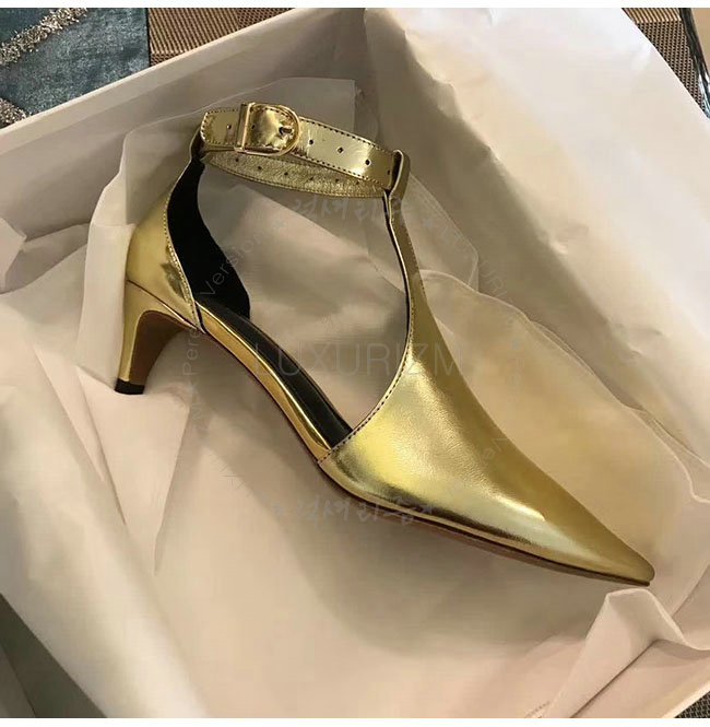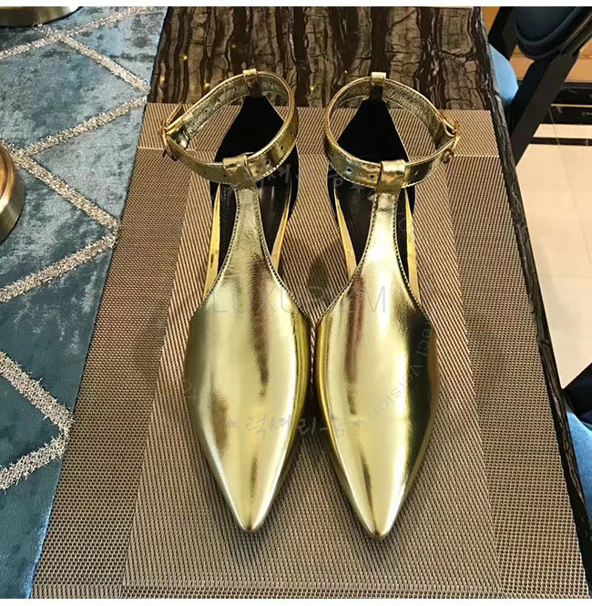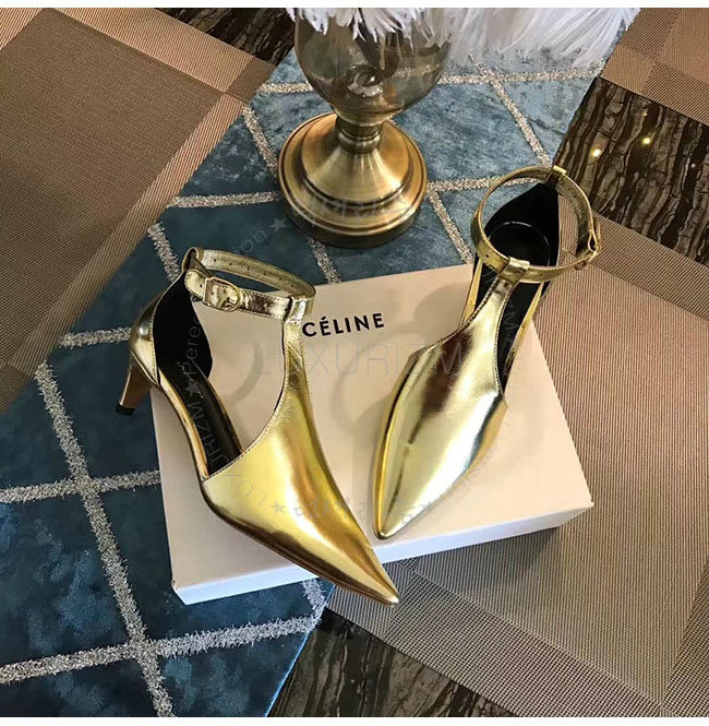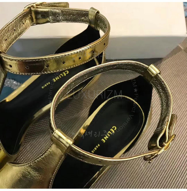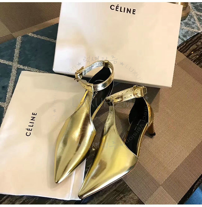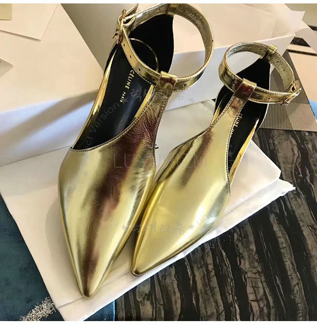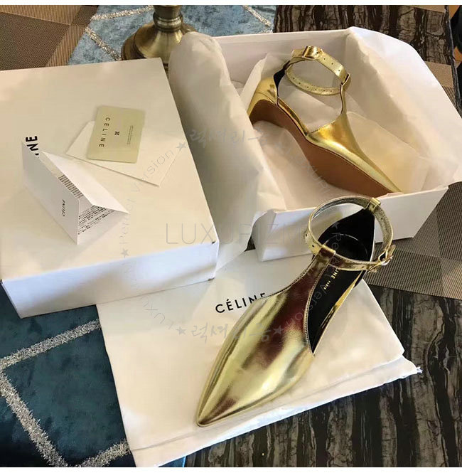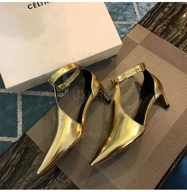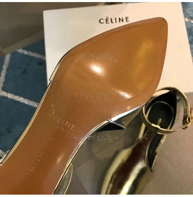 CELINE-323003 셀린느 골드 살로메 라미네이트 키튼 힐 펌프 샌들 여성용
