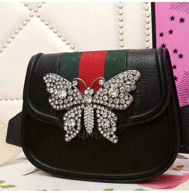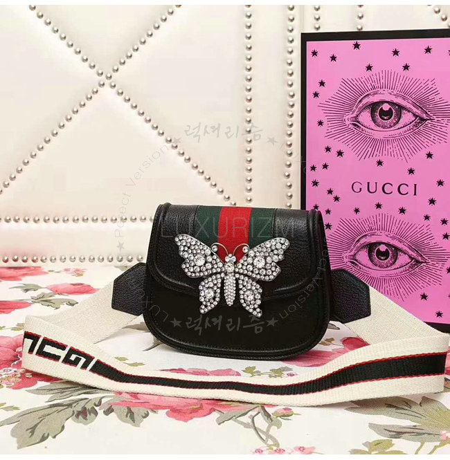 [스페셜오더]GUCCI-505387 8478 구찌 나비 디테일 블랙 가죽 숄더백