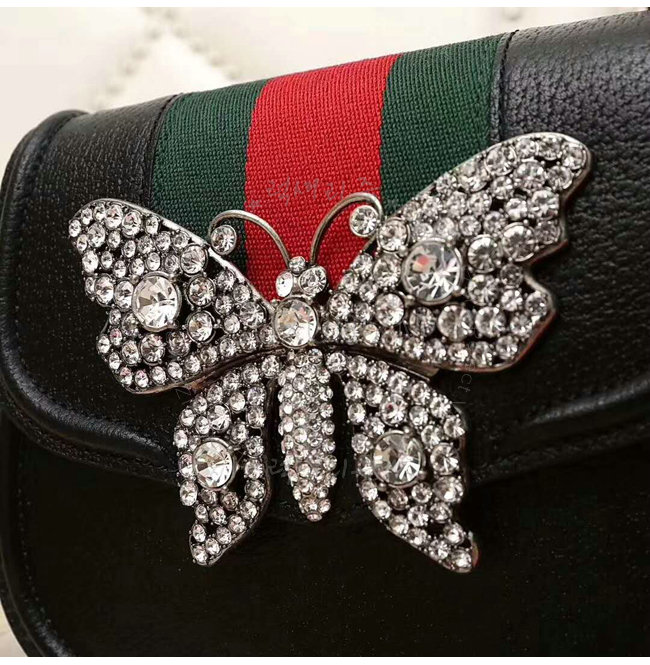 그린/레드 Web 디테일 크리스탈 디테일의 메탈 나비 구찌 자카드