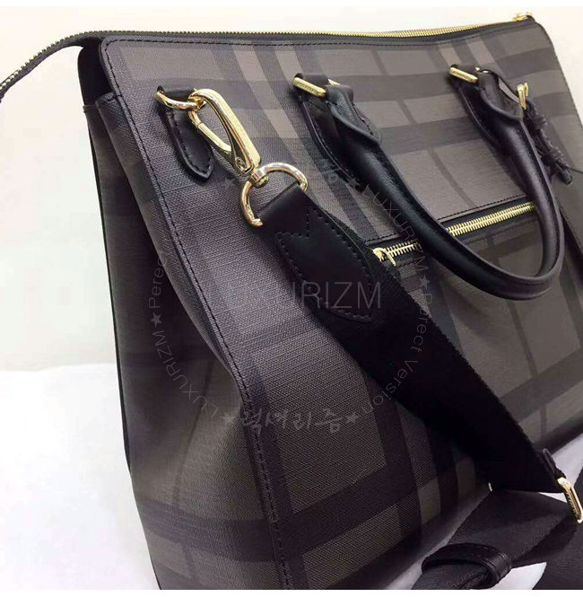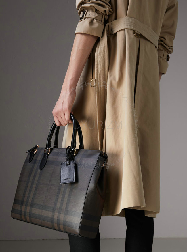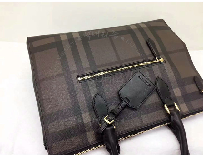 시그니처 런던 체크 소재의 브리프케이스. 서류와 노트북을 수납할 수 있는