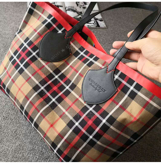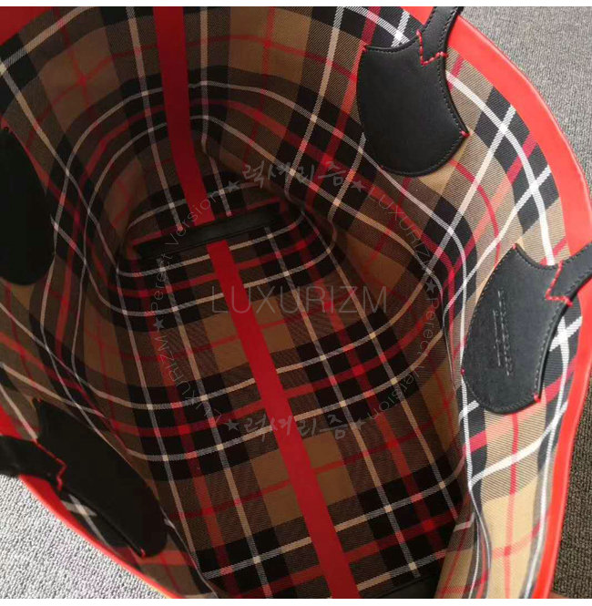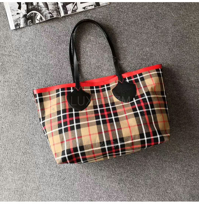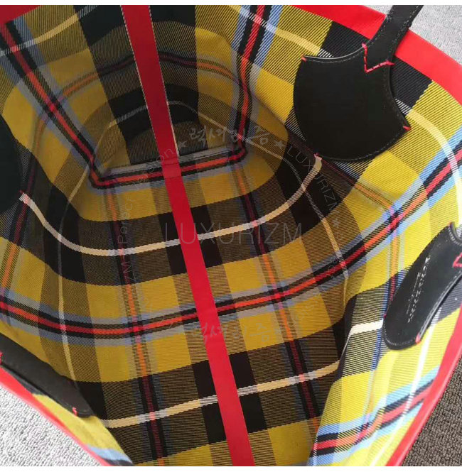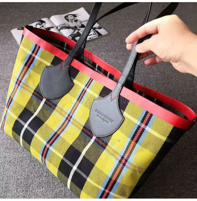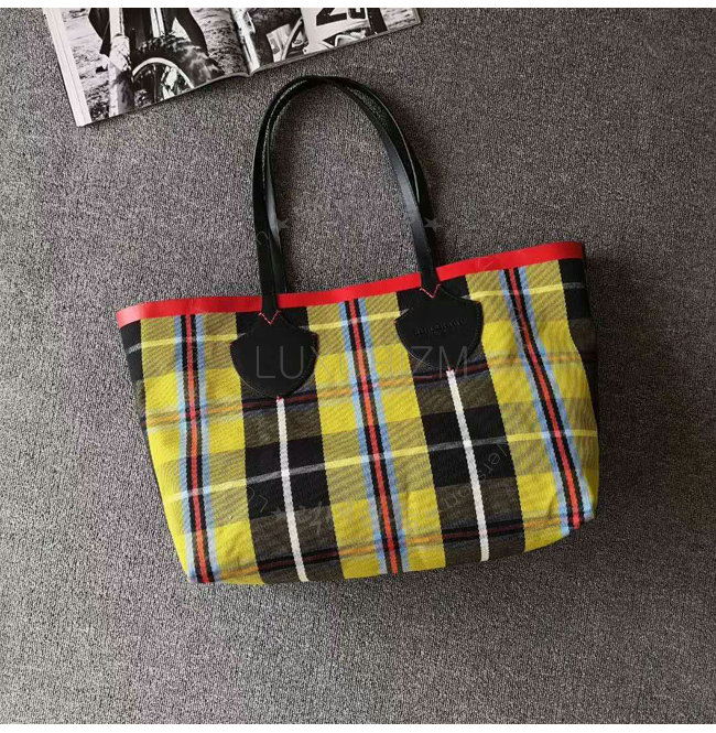 BURBERRY-40700561 버버리 미디엄 자이언트 타탄 코튼 캐러멜 플랙스 옐로 리버시블 토트