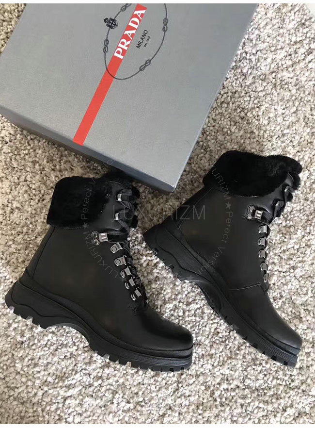 PRADA-3T6256 프라다 블랙 양가죽 앵클 부츠 여성용