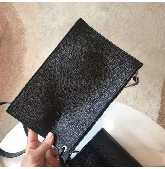 스몰 사이즈 쇼핑백 슬림형 핸들 샤이니한 팔라듐 마감 내부 지퍼 가죽 파우치 탈부착 가능한