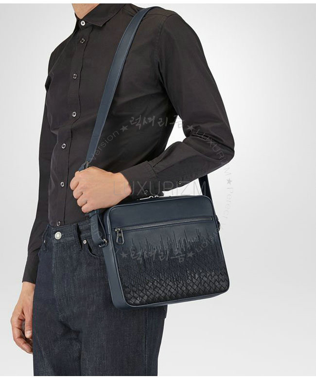 컴팩트한 사이즈의 메신저 백. 장인의 손길로 완성된 인트레치아토 가죽과 플레인 가죽을 조합한 모델로 두가지 다른 톤온톤 컬러와 텍스처로 자수를 놓은 스카이라인 모티브가 세련된 입체감을 연출합니다.