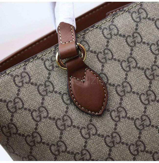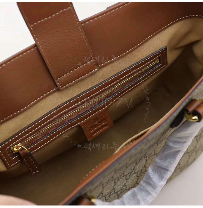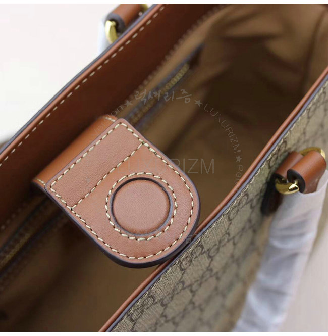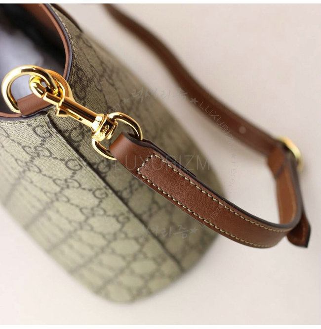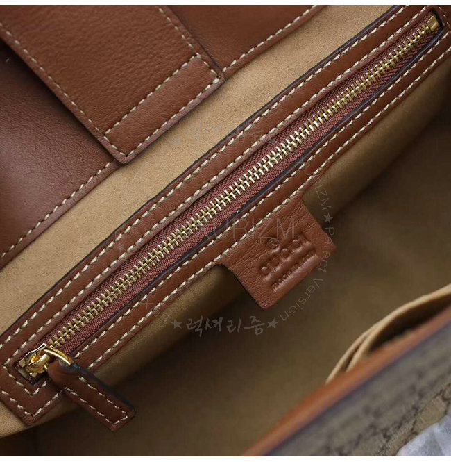 베이지/에보니 소프트 GG수프림 브라운 가죽 트리밍 라이트 골드톤 메탈장식