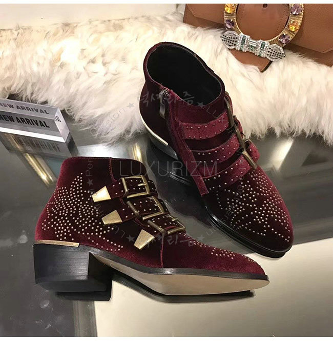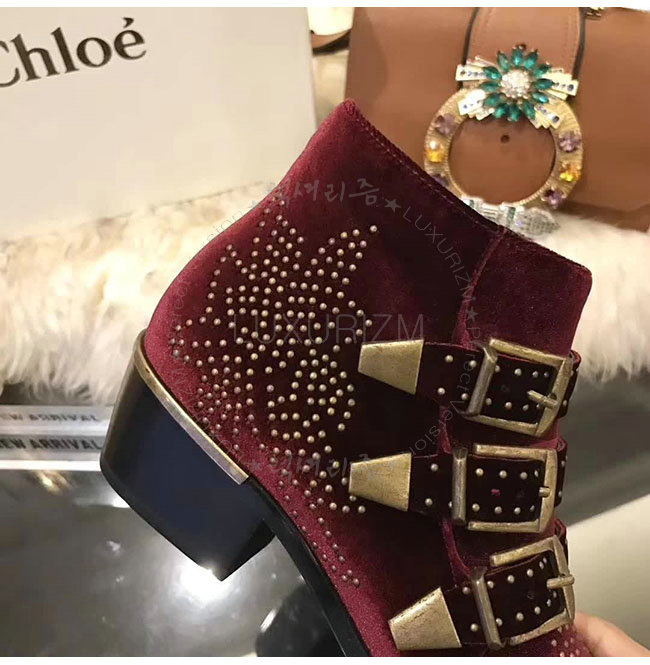 CHLOE-CH24134 끌로에 수산나 레드 벨벳 앵클 부츠 여성용