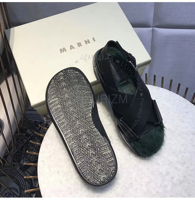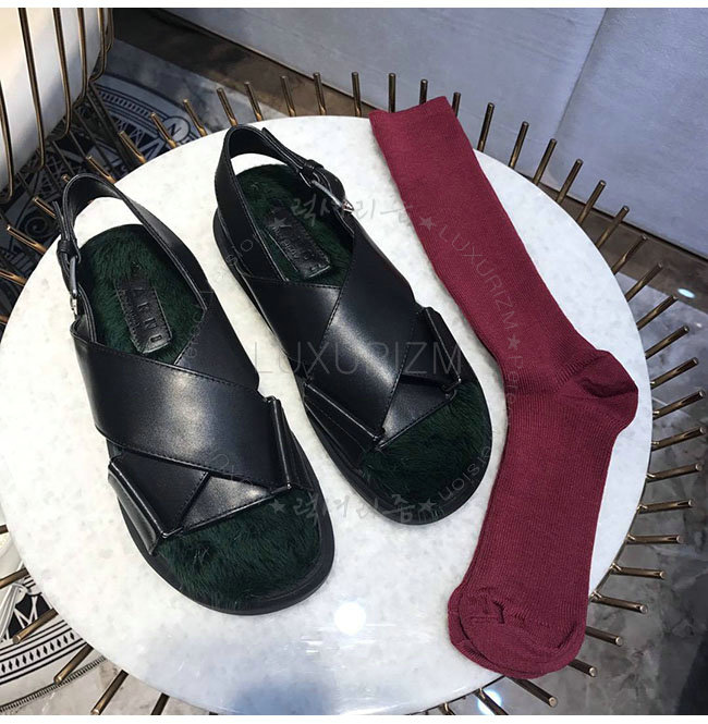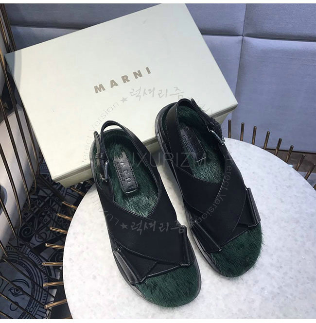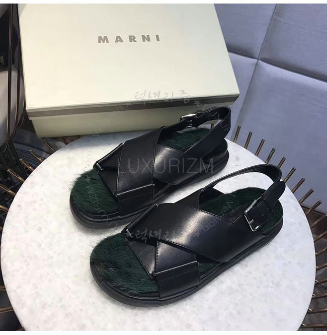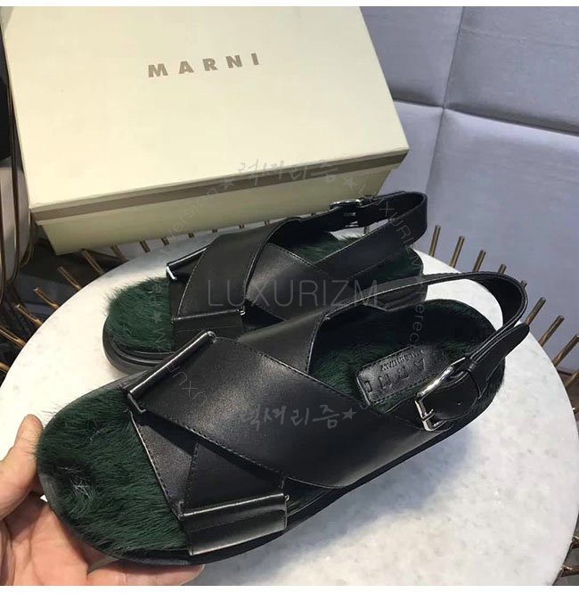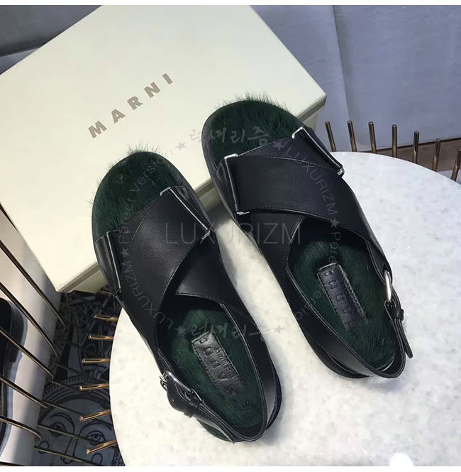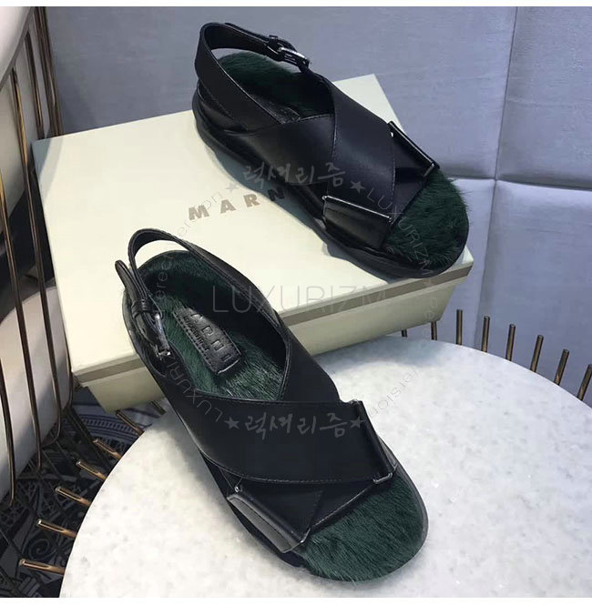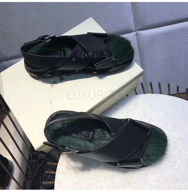 MARNI- FBMSZ12 마르니 블랙 가죽 밍크 퍼스벳 샌들 여성용