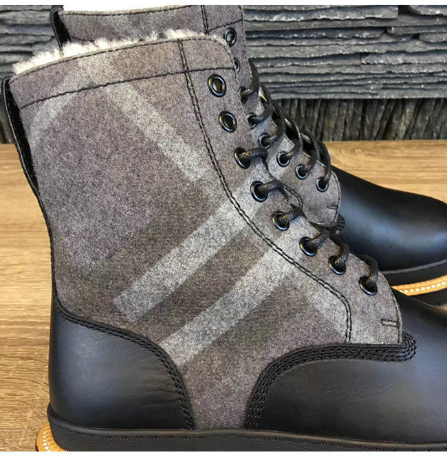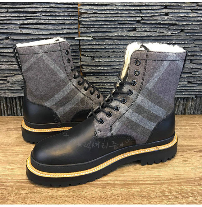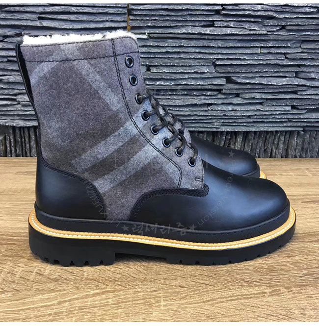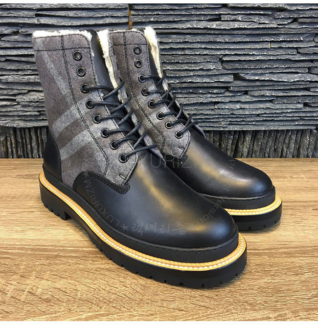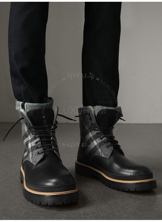 [스페셜오더]BURBERRY-40567541 버버리 블랙 시얼링 라인 가죽 체크 부츠