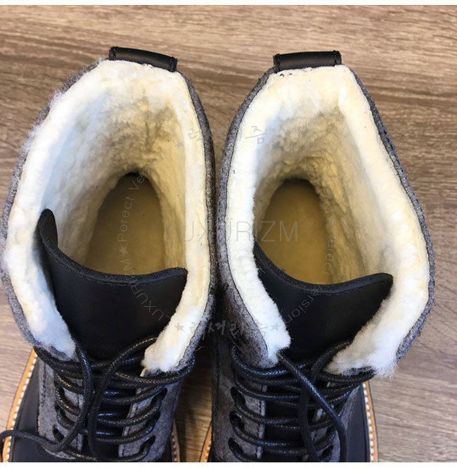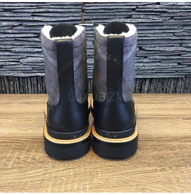 울과 캐시미어 혼방 소재의 체크 패널과 매끄 러운 가죽으로 이탈리아에서 제작된 부츠.