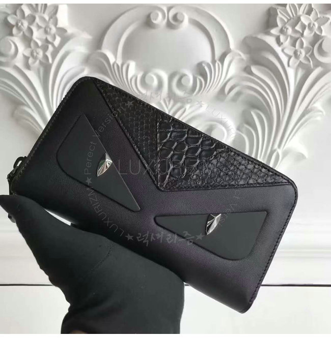 #펜디지갑쇼핑몰추천 연예인펜디 홍콩1위쇼핑몰 럭셔리즘 [스페셜오더]FENDI-7M0210 펜디 송아지 가죽 악어가죽 트리밍 집 어라운 월릿