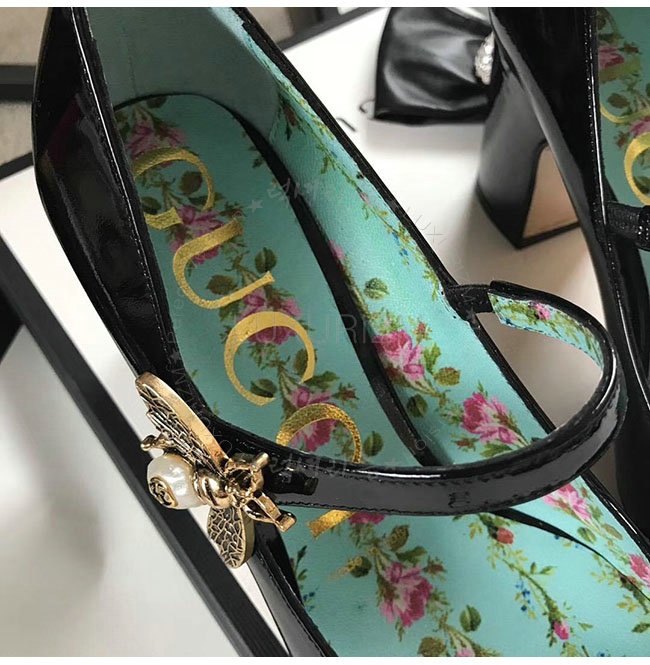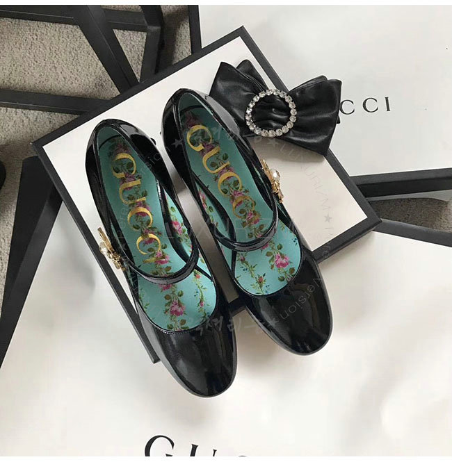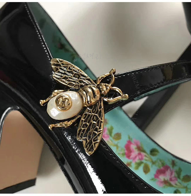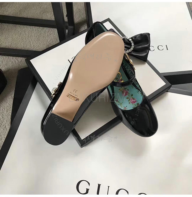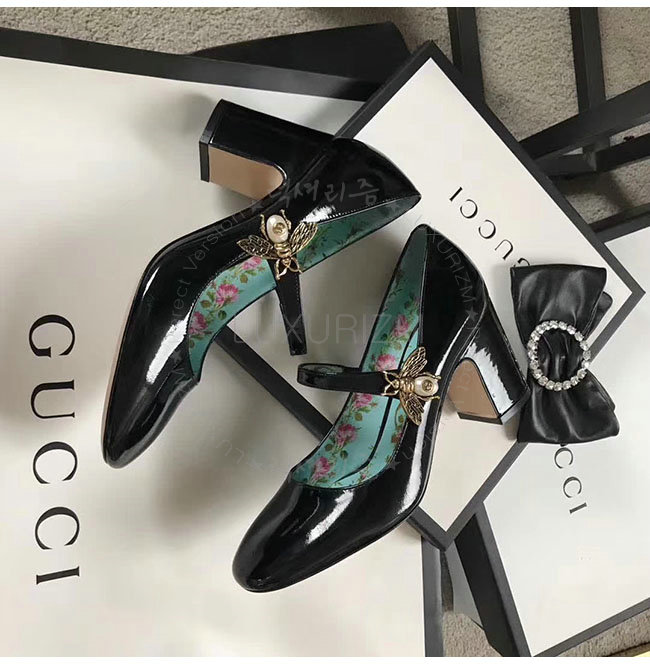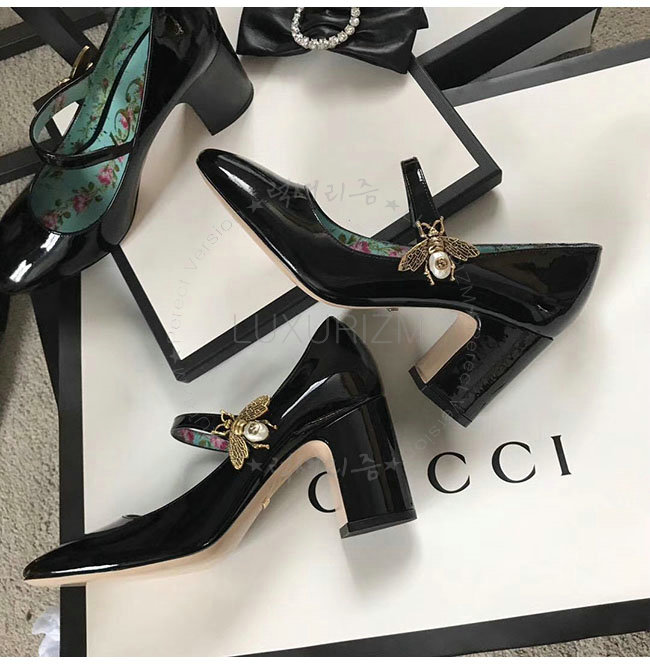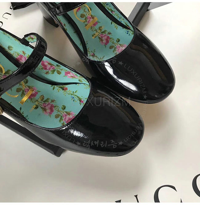 GUCCI-481177 1000 구찌 블랙 페이턴트 가죽 미드 힐 여성용 [무료배송상품]
