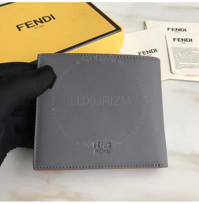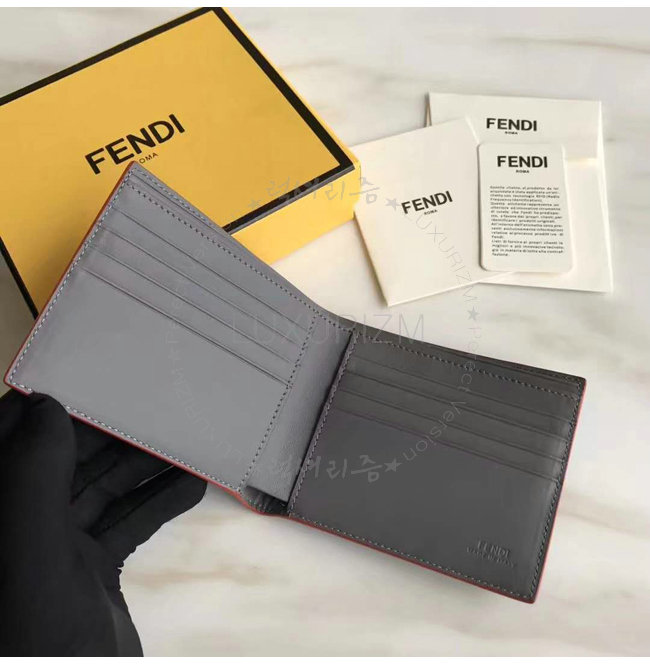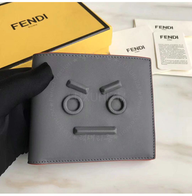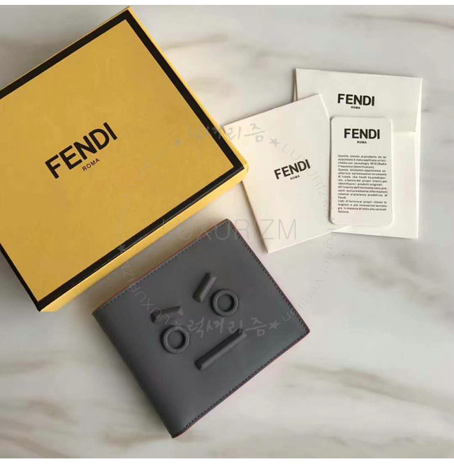 [스페셜오더]FENDI-7M0169 펜디 송아지 가죽 펜디 페이스 모티브 그레이 반지갑