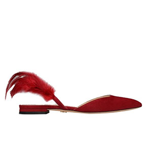 DIOR-KDB404 디올 버건디 깃털 스웨이드 가죽 슬링 백 발레리나 여성용