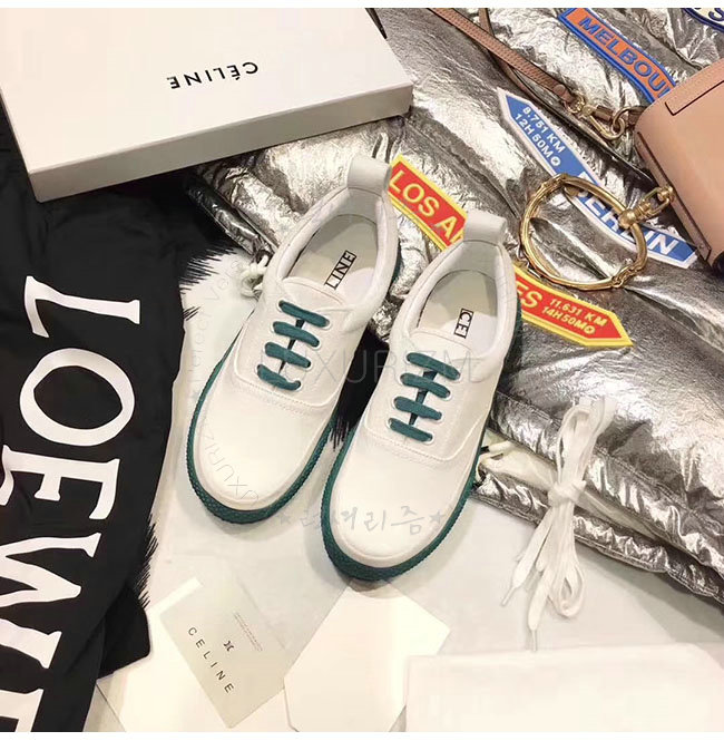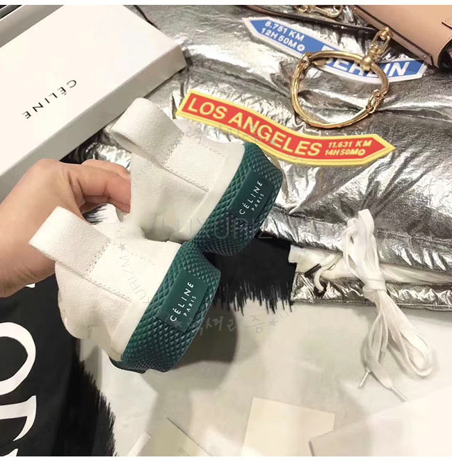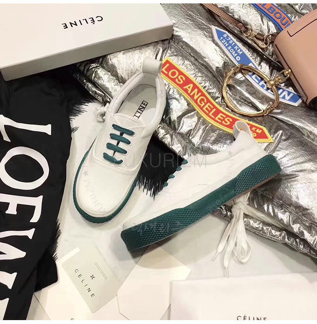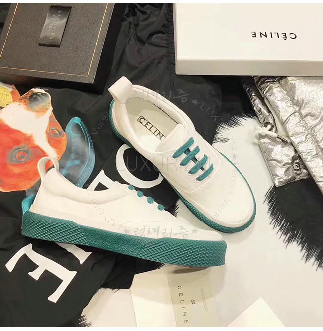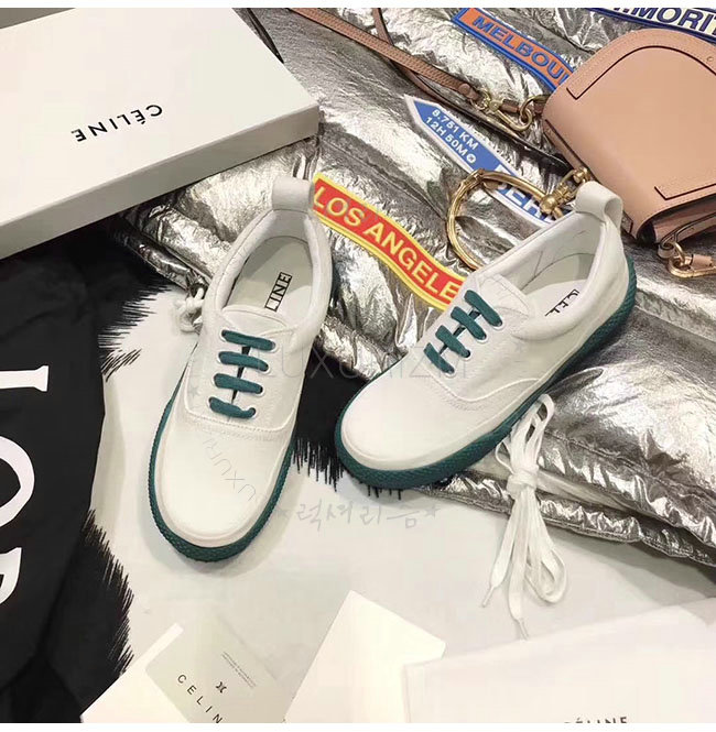 CELINE-323982 셀린느 캔버스 그린 레이스 업 스니커즈 여성용