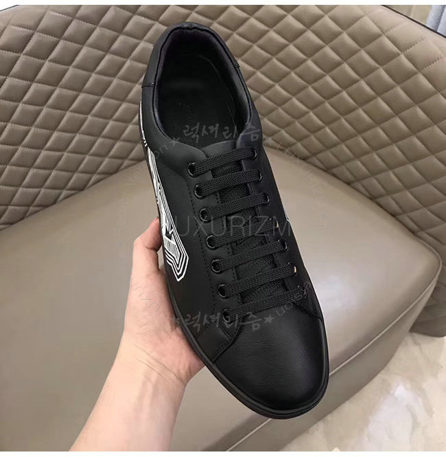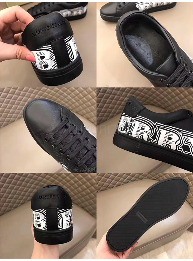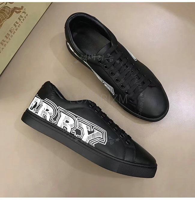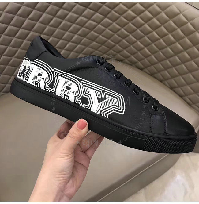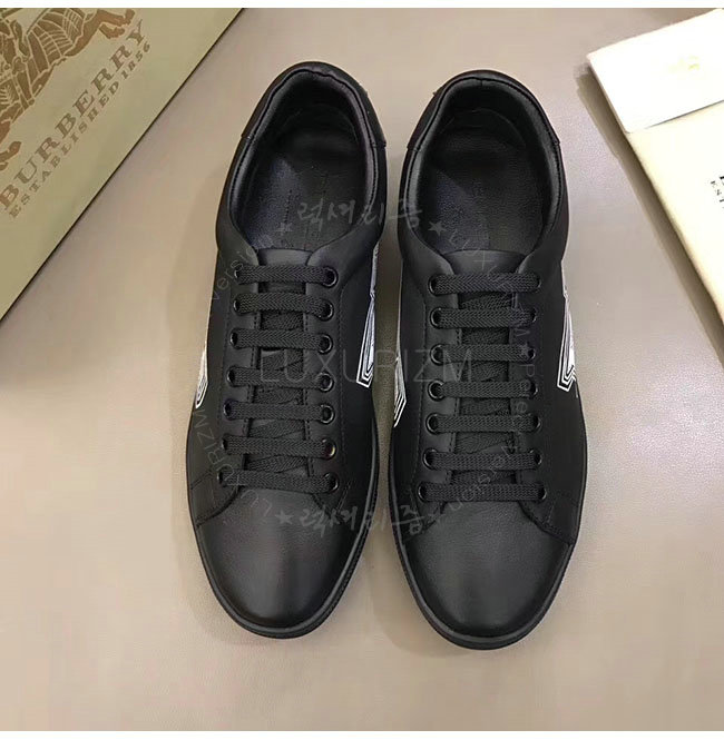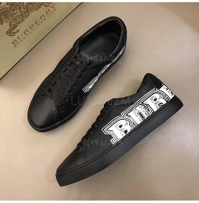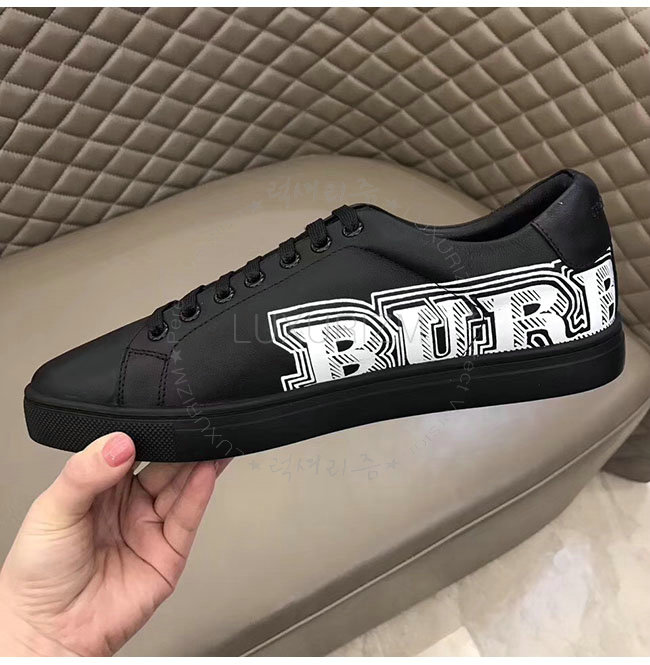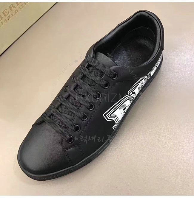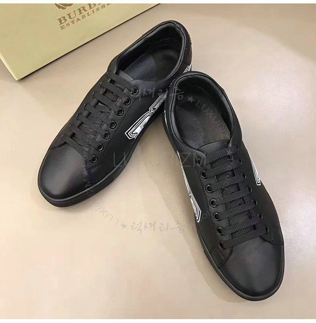 BURBERRY-40662661 버버리 블랙 가죽 두들 프린트 가죽 스니커즈 남성용