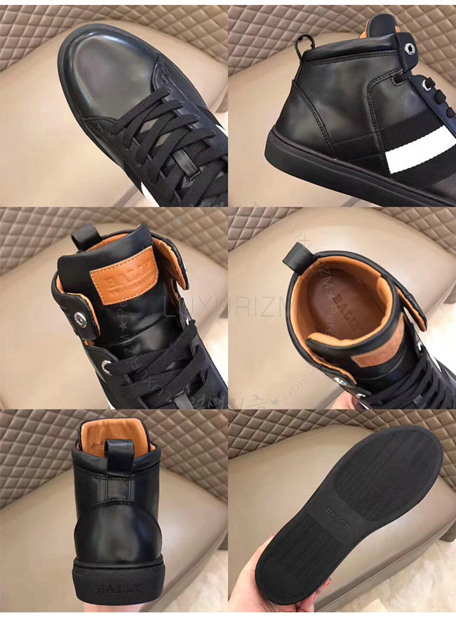 [스페셜오더]BALLY-6209802 발리 허드런 블랙 가죽 스니커즈 남성용