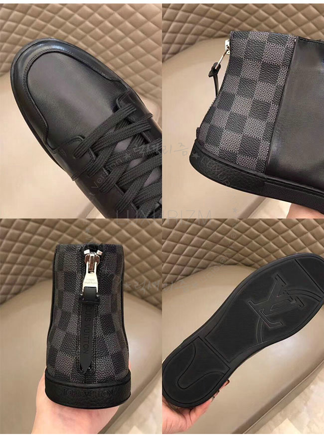 LOUIS VUITTON-1A1IKQ 루이비통 블랙 가죽 라인 업 스니커 부츠 남성용