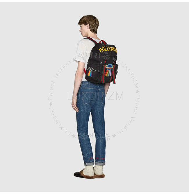 GUCCI-429037 8672 구찌 Techpack 아플리케 자수 장식 메쉬 블랙 테크팩