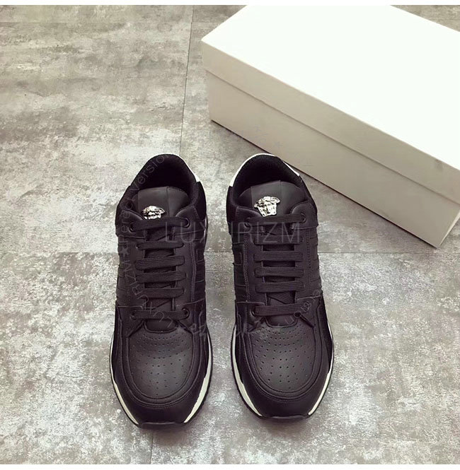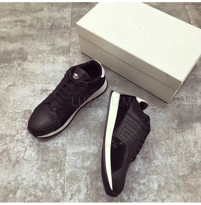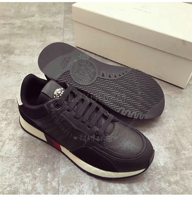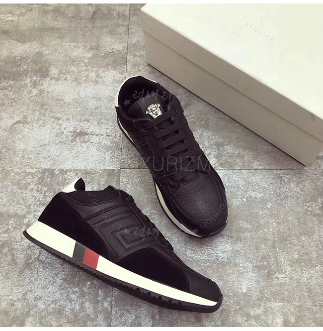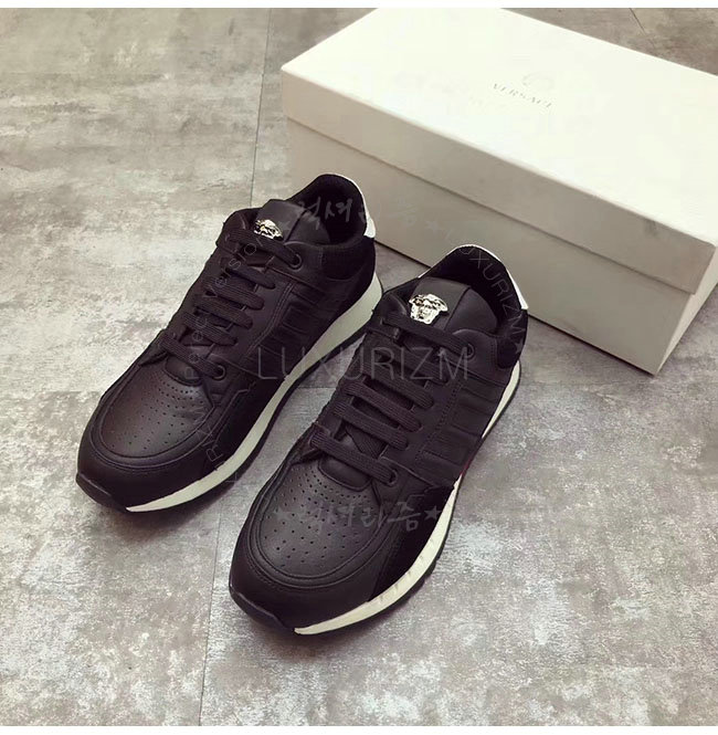 VERSACE-베르사체 그레차 블랙 가죽 스니커즈 남성용