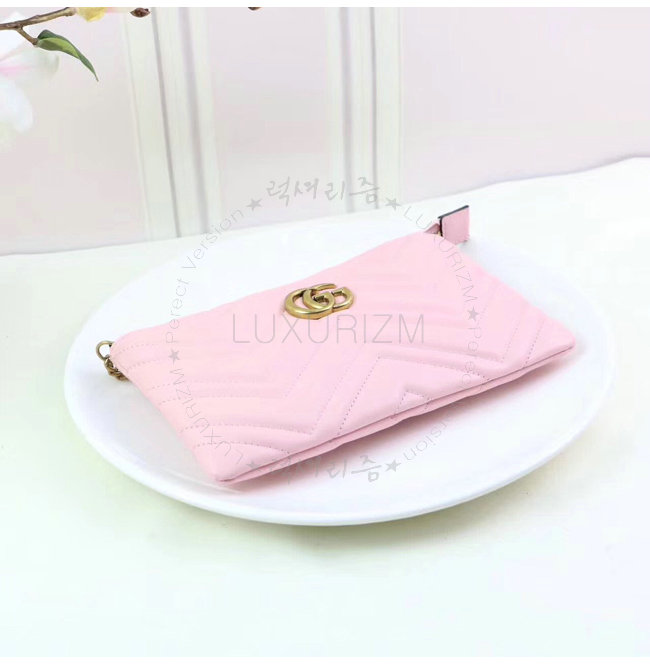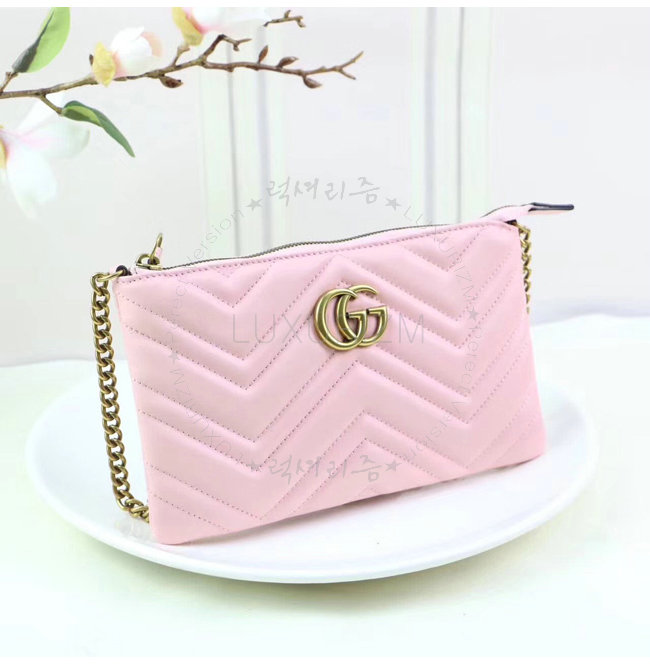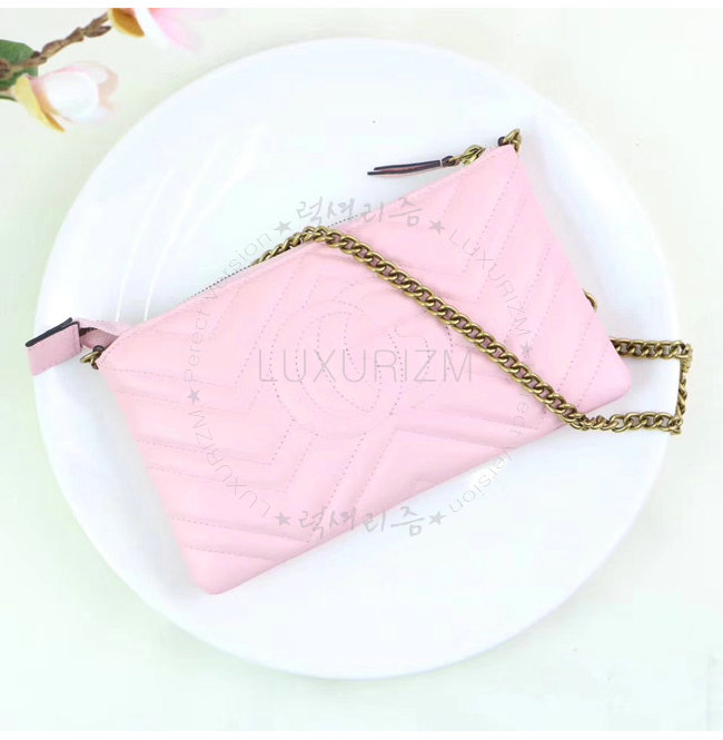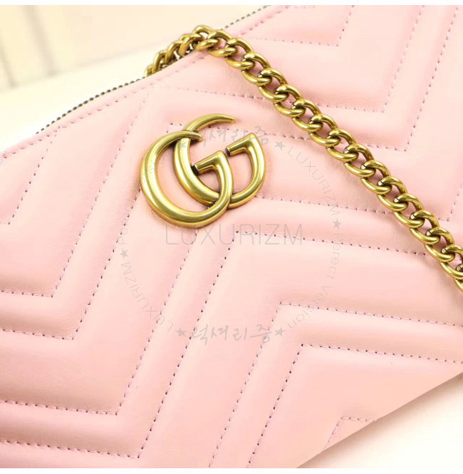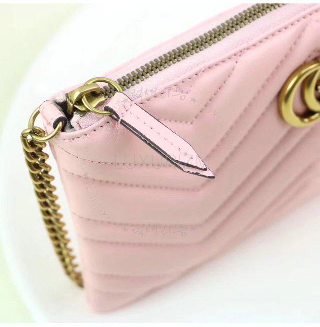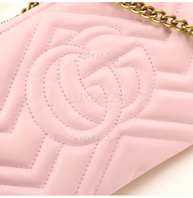 GUCCI-443447 1089 구찌 GG Marmont 라이트 핑크 마틀라세 가죽 미니 체인 백