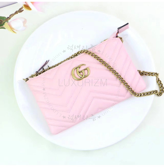 GUCCI-443447 5554 구찌 GG Marmont 핑크 마틀라세 가죽 미니 체인 백