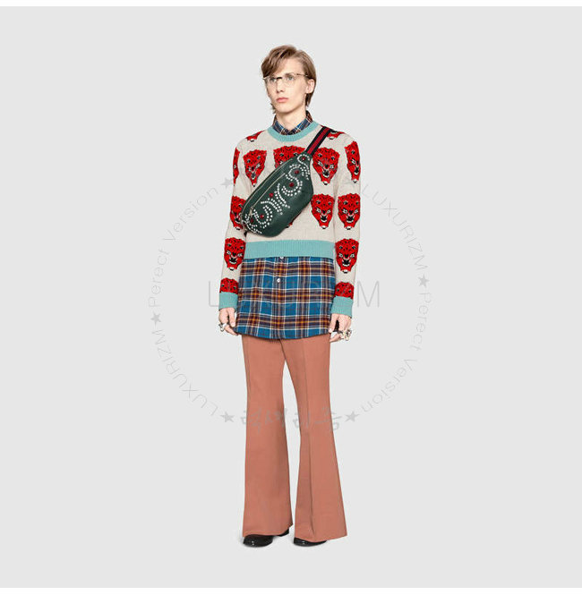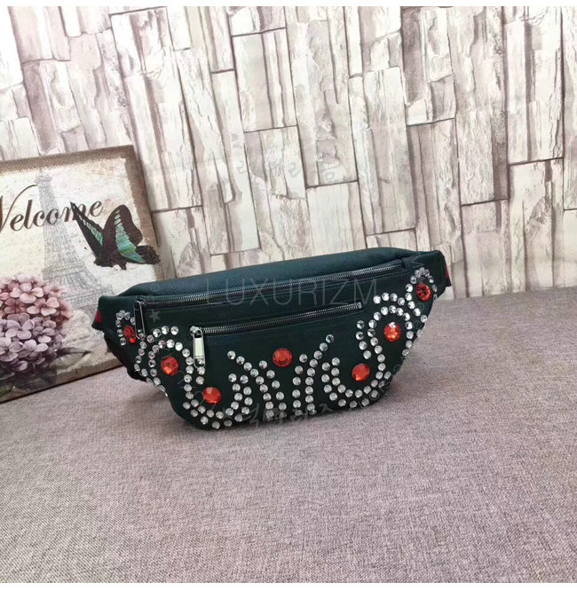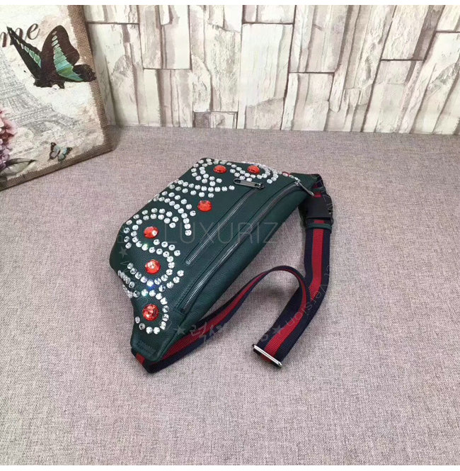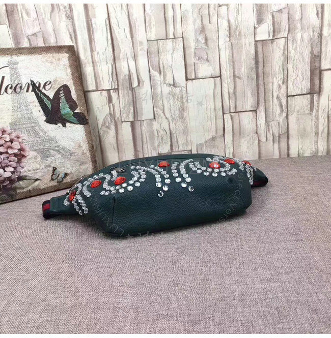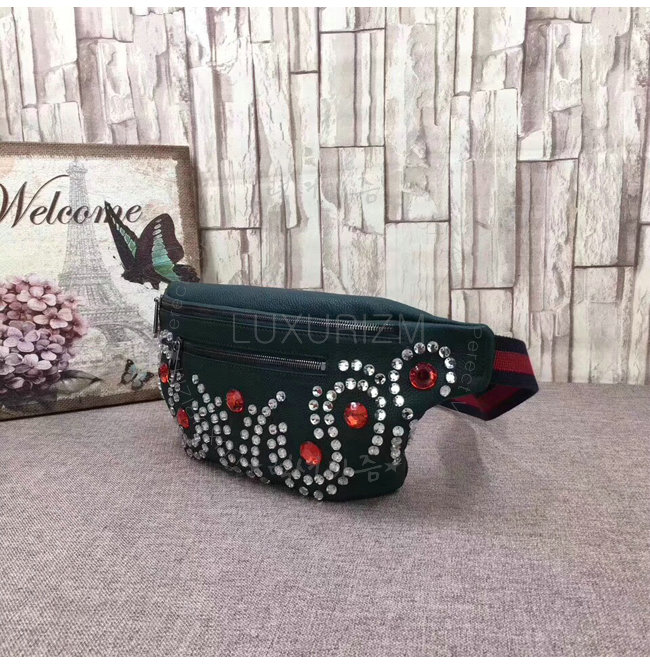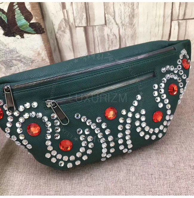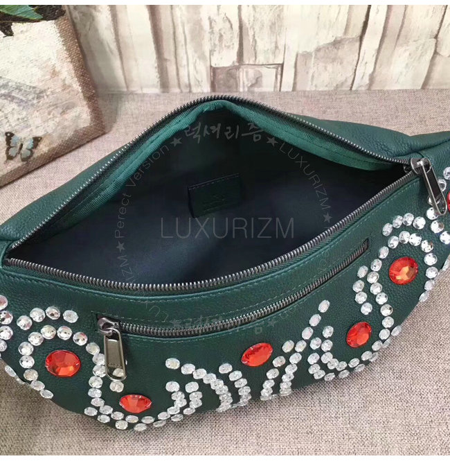 [스페셜오더]GUCCI-484683 3087 구찌 그린 가죽 크리스탈 트리밍 벨트 백