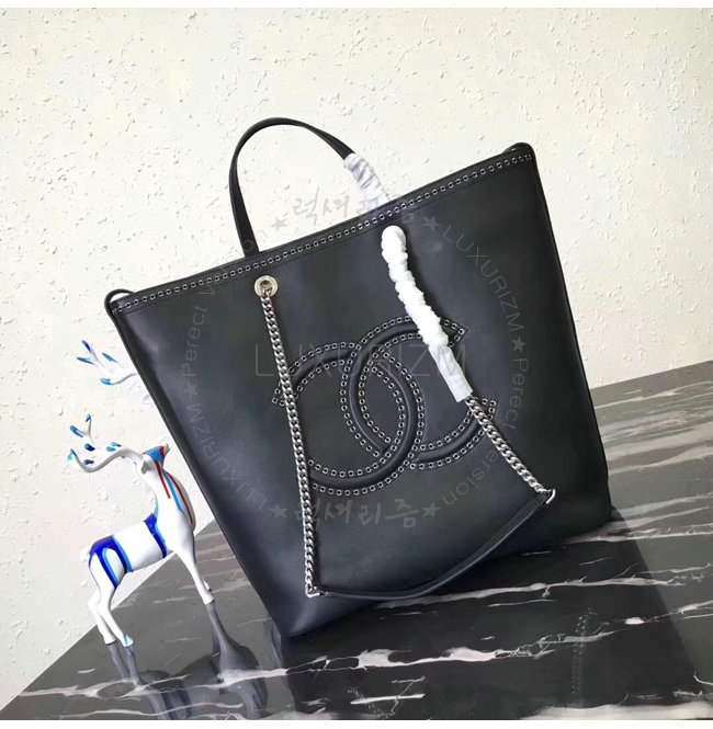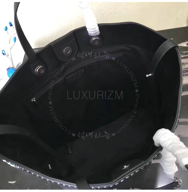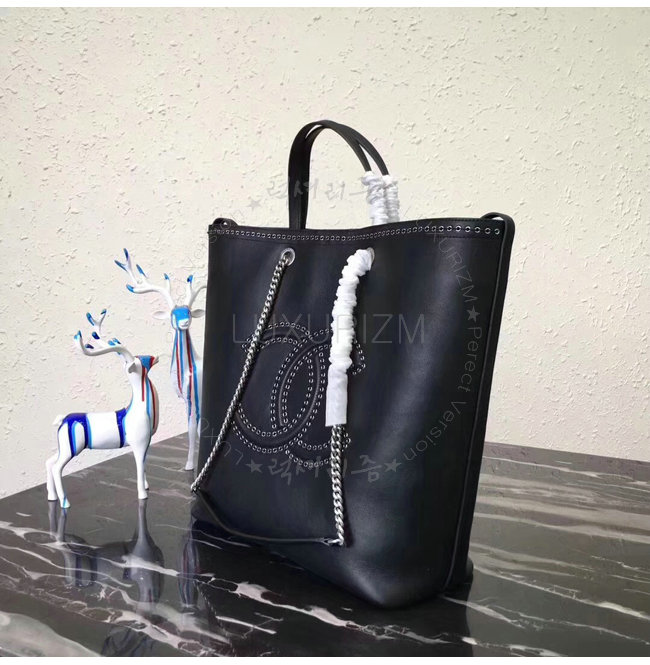 [스페셜오더]CHANEL-A69994 샤넬 카프스킨 아일릿 실버 메탈 블랙 라지 토트 백