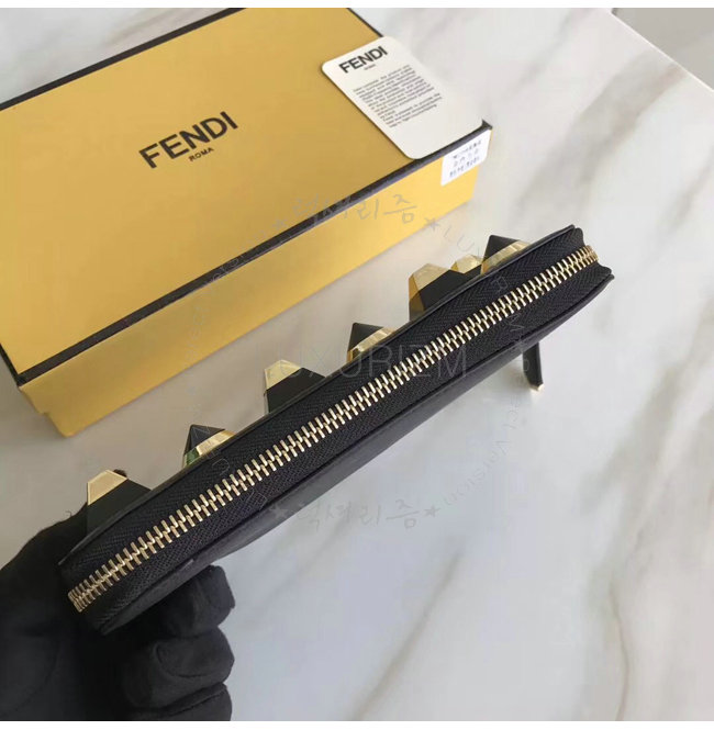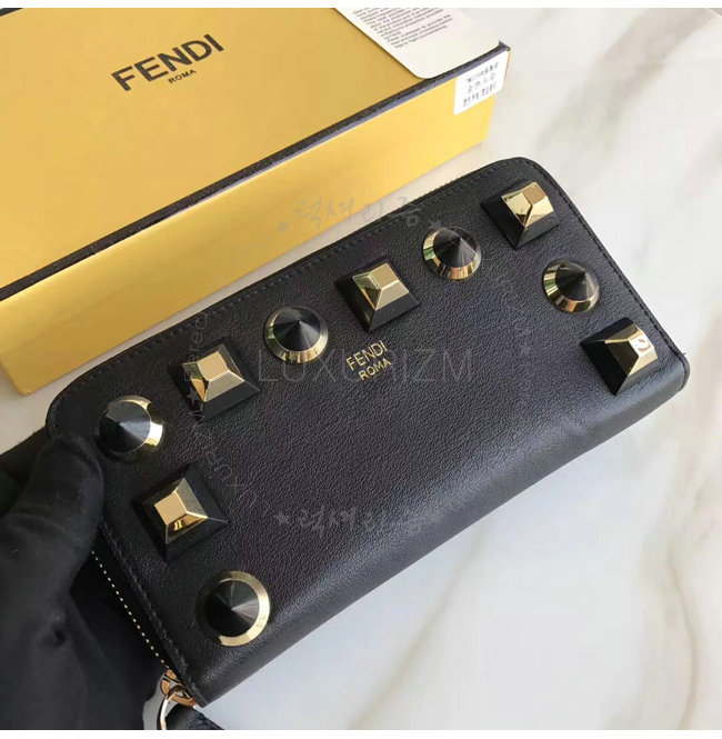 [스페셜오더]FENDI-8M0299 펜디 송아지 가죽 스터드 장식 블랙 지퍼 어라운드 월릿