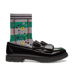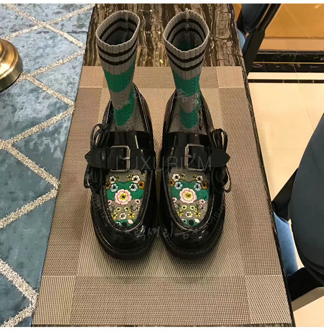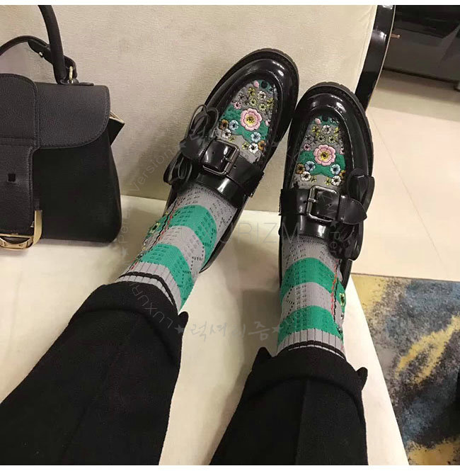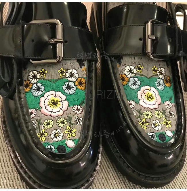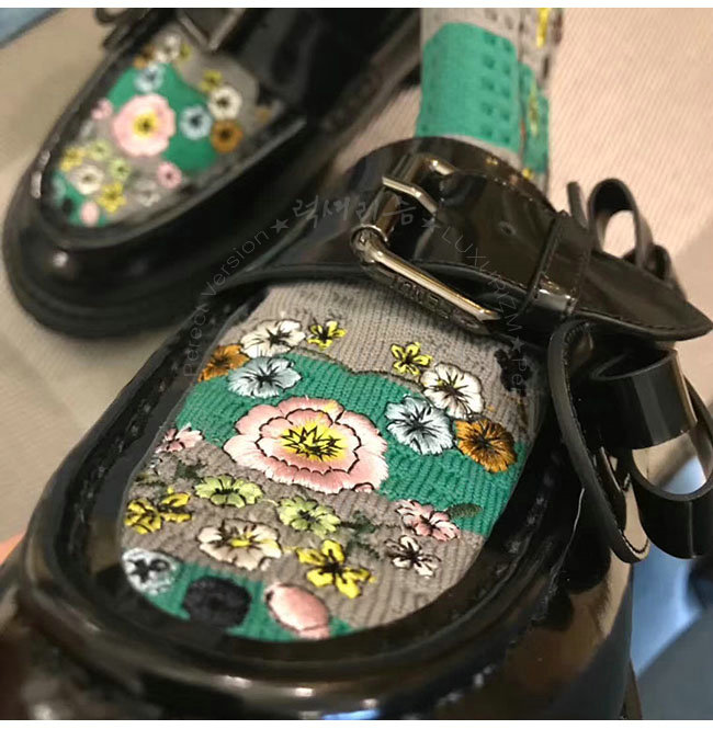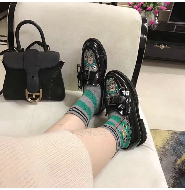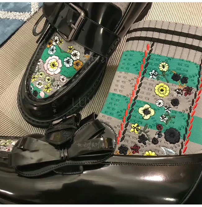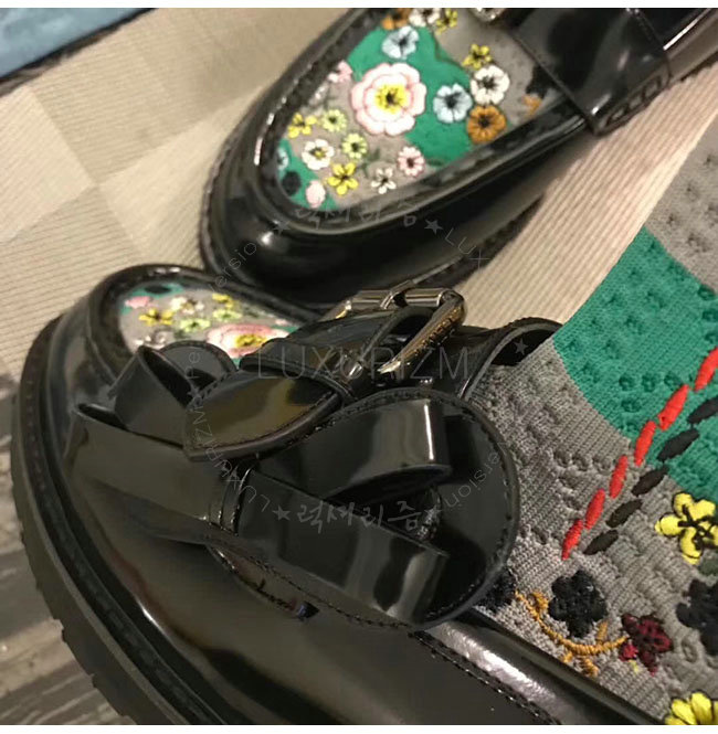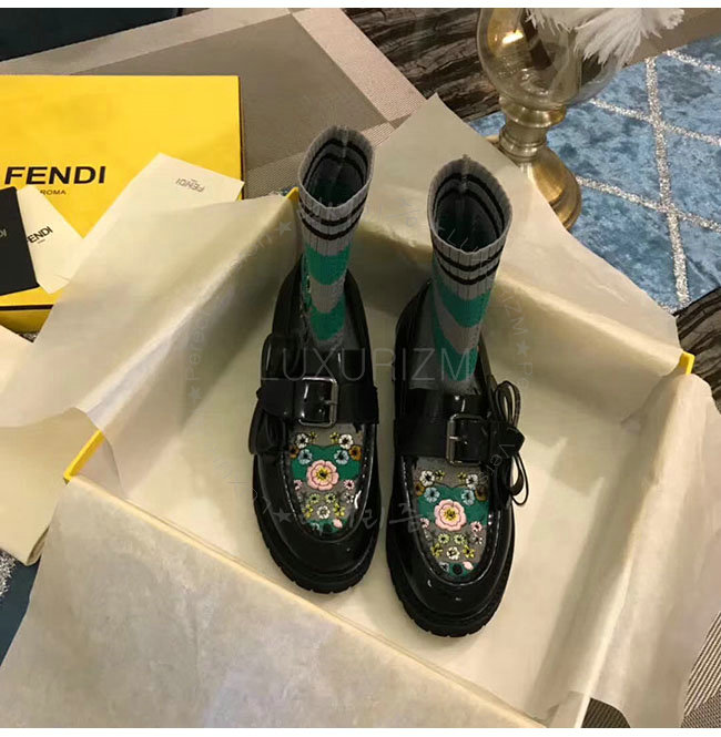 [스페셜오더]FENDI-8T6615 펜디 블랙 가죽 플라워 자수 니트 로퍼 여성용