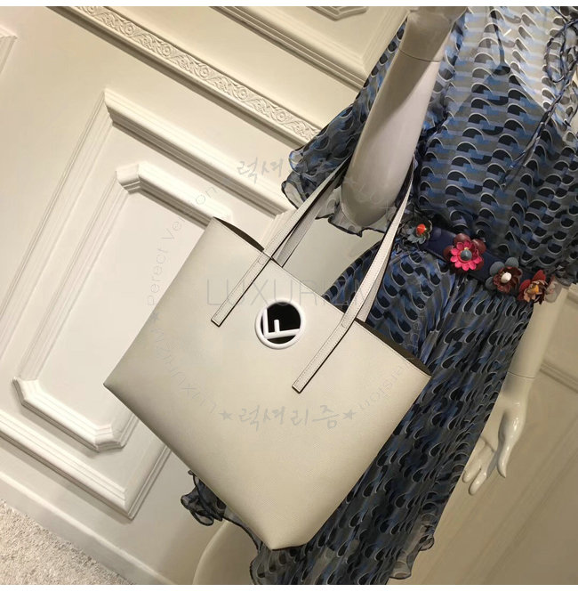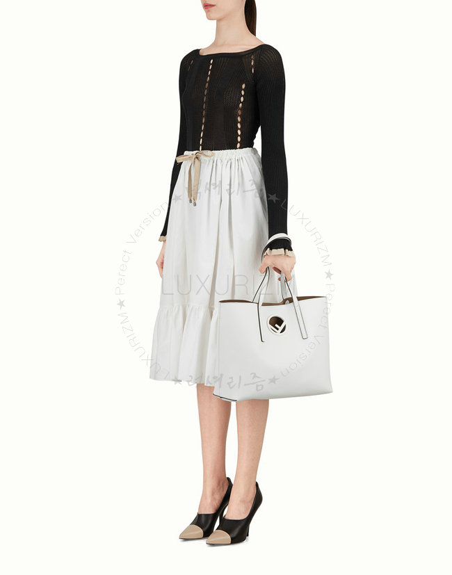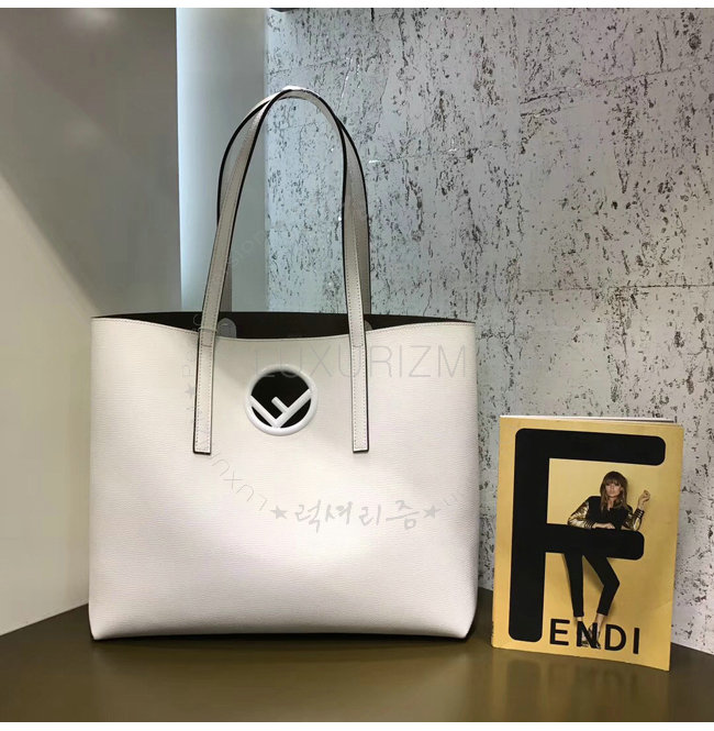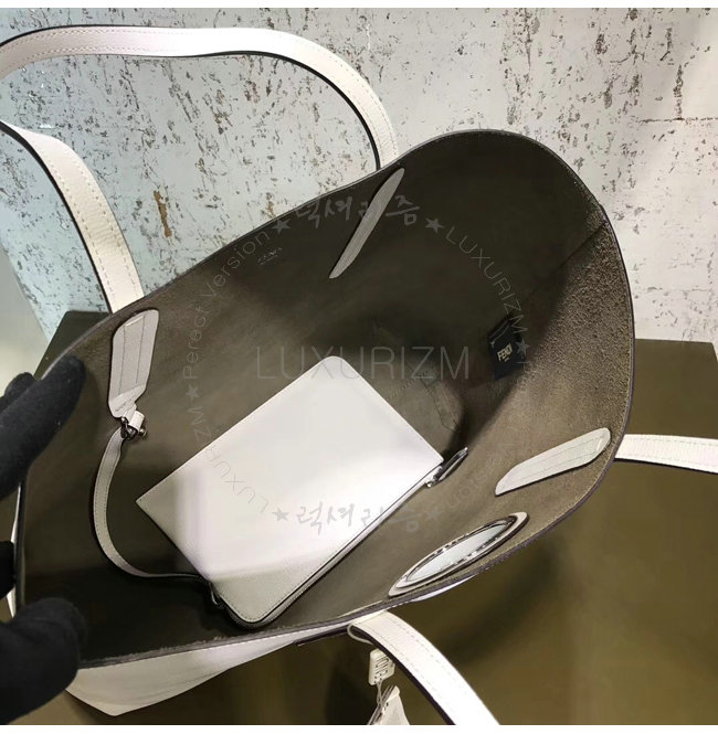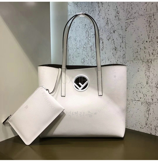 [스페셜오더]FENDI-8BH348 펜디 송아지 가죽 Fendi F 로고 트리밍 화이트 쇼퍼 백