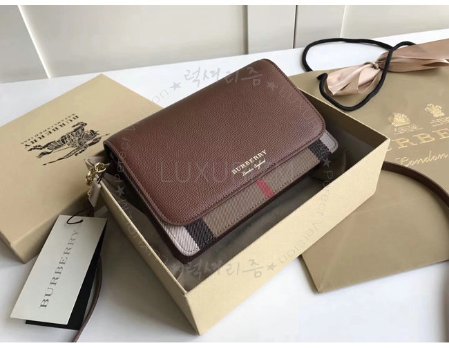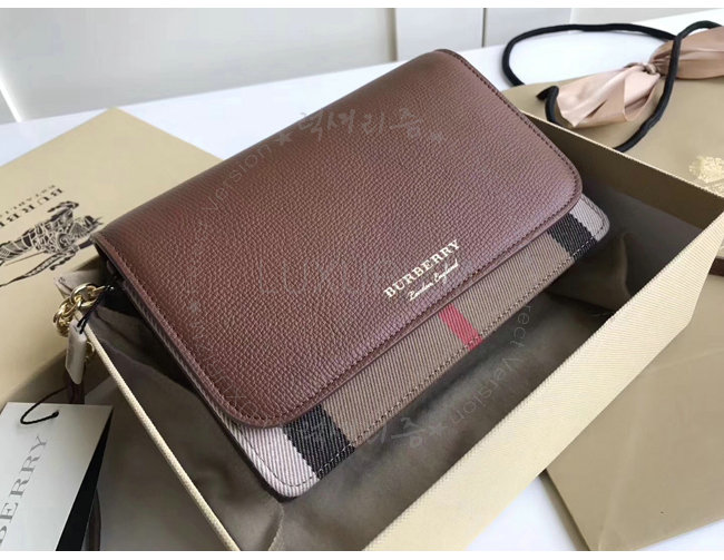 탈착식 어깨끈 수작업으로 마감칠된 테두리 유광 금속 하드웨어 앞면의 버버리 엠보싱 로고.