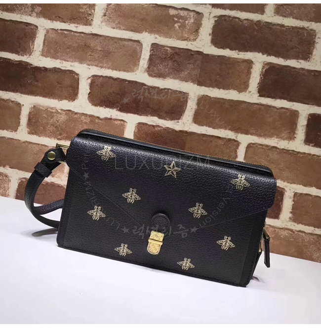 [스페셜오더]GUCCI-495678 1055 구찌 블랙 가죽 벌 모양 프린트 플랩 백