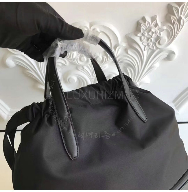 숄더 스트랩. 드로우스트링으로 잠그는 가벼운 캐주얼 백 내부 포켓. 팔라듐 피니싱 메탈장식.