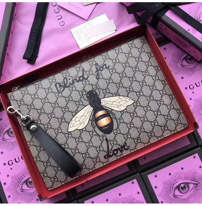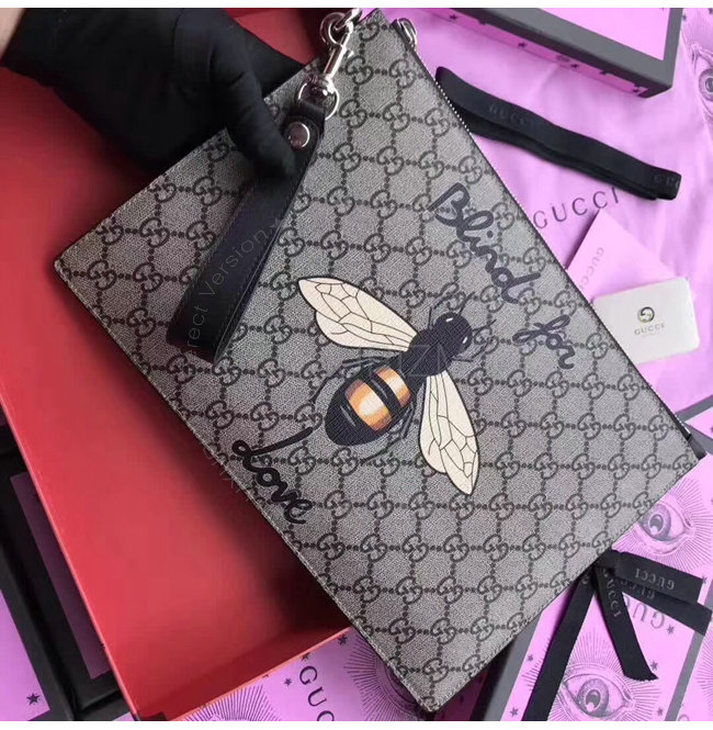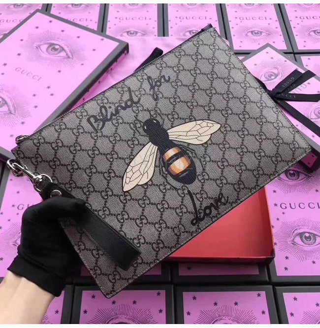 [스페셜오더]GUCCI-473904 8666 구찌 GG 수프림 캔버스 꿀벌 프린트 파우치