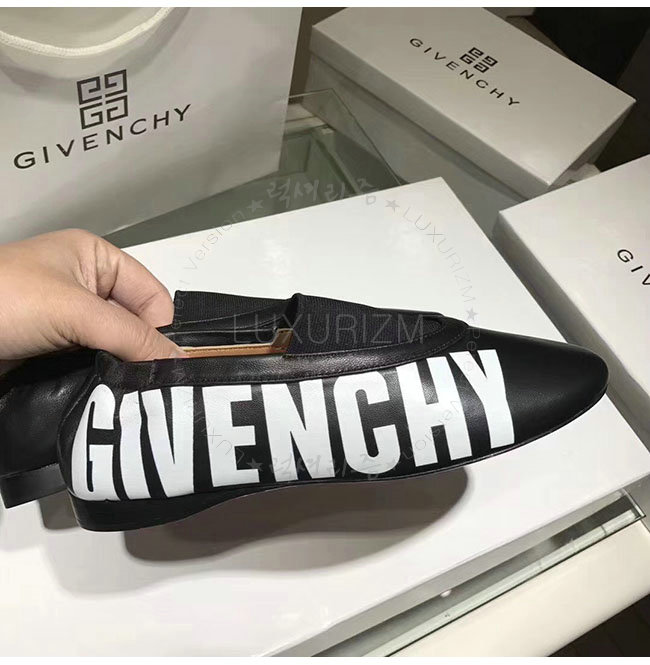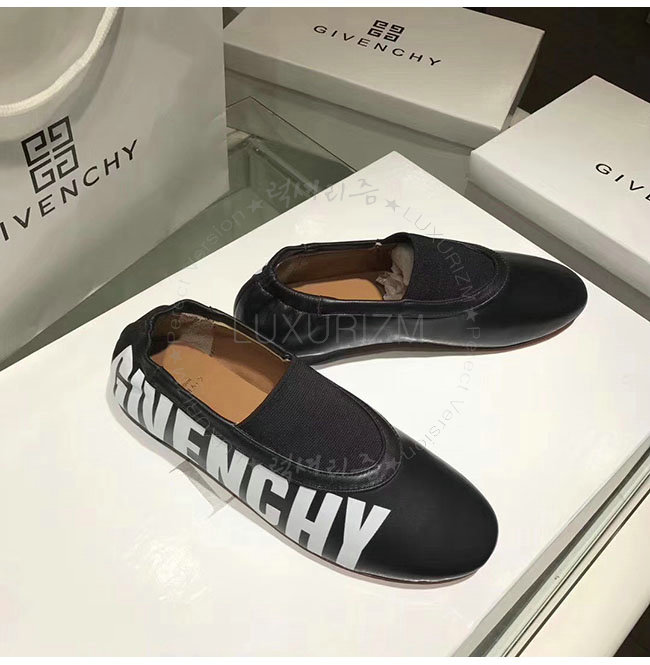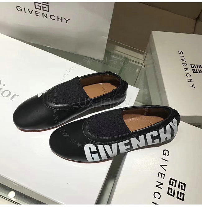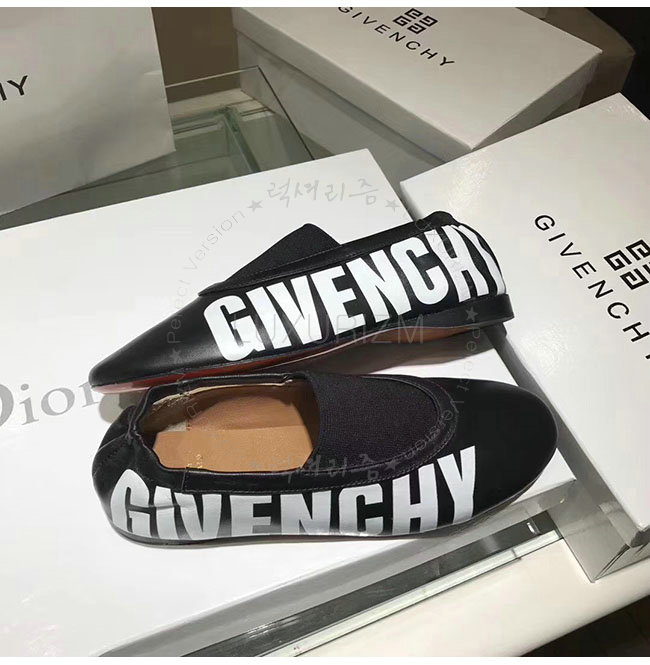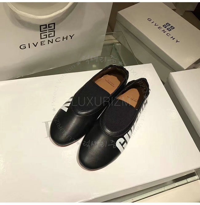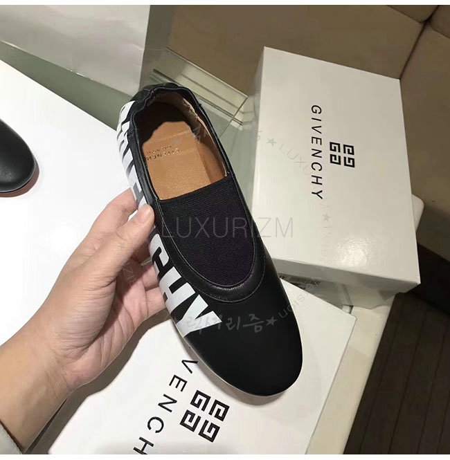 GIVENCHY-BE5007 지방시 블랙 가죽 로고 피린트 플랫 슈즈 여성용