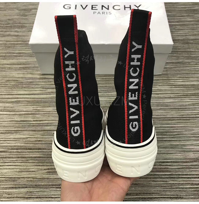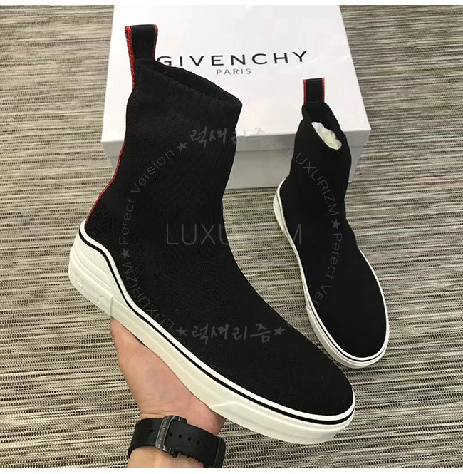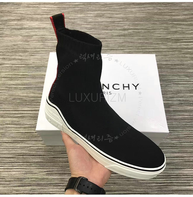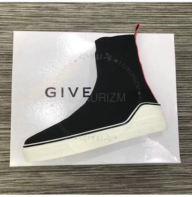 GIVENCHY-BH000T 지방시 블랙 니티드 미드 하이탑 스니커즈 남성용
