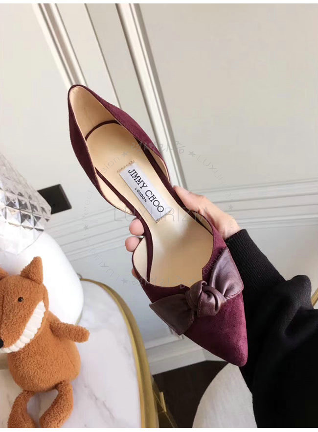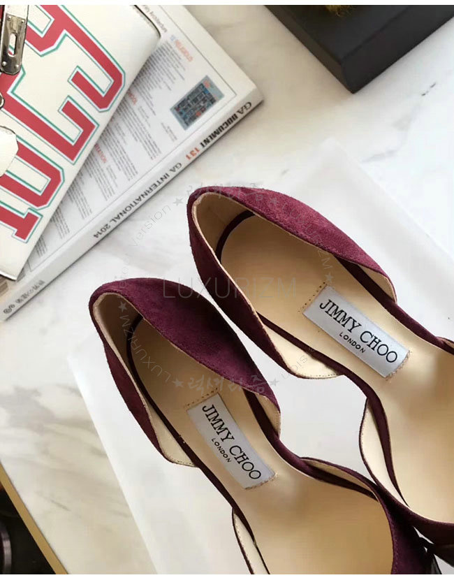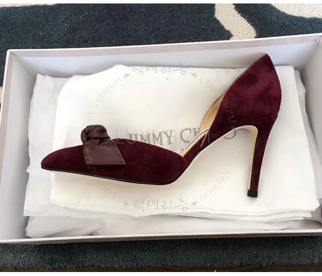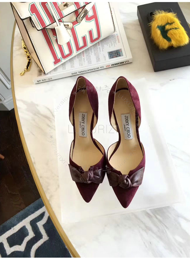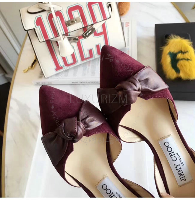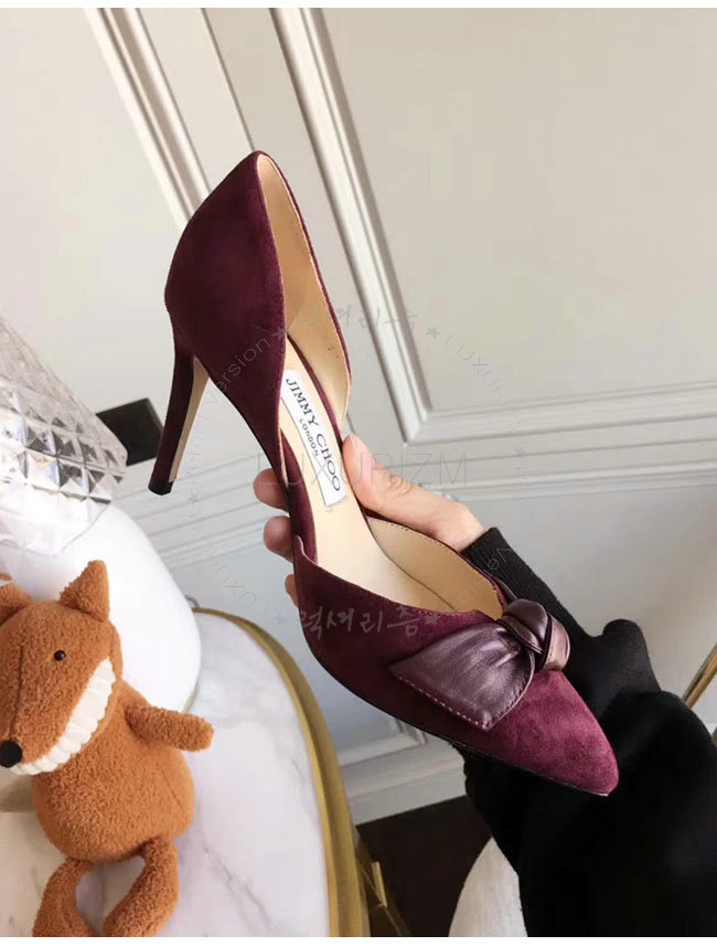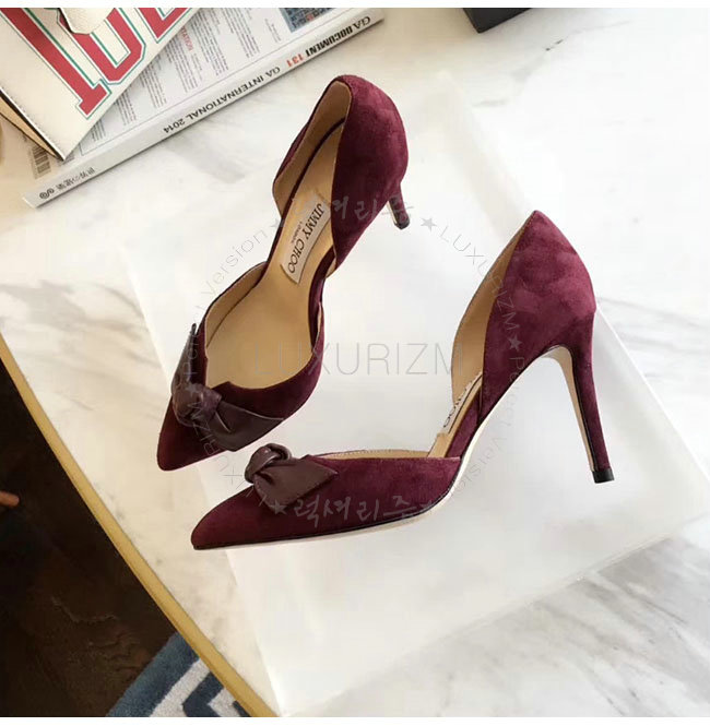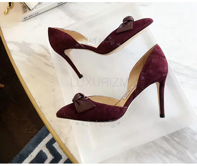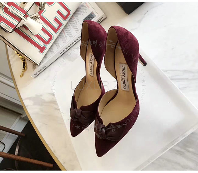 JIMMY CHOO-TWINKLE 지미추 버건디 스웨이드 가죽 트윙클 포인티 토 펌프스 여성용