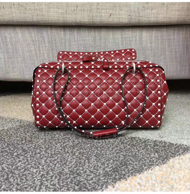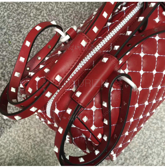 [스페셜오더]VALENTINO-PW2B0B33 발렌티노 송아지 가죽 프리 락스터드 스파이크 레드 더플 백