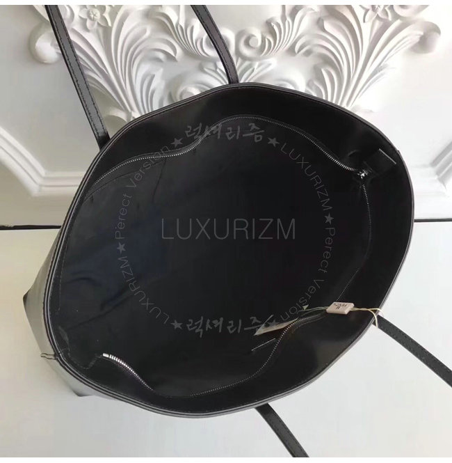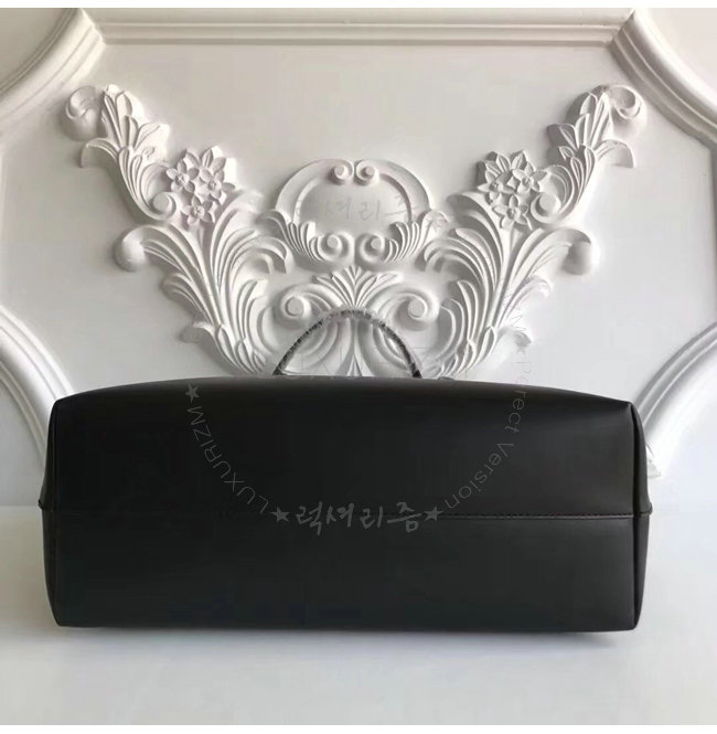 부드러운 송아지 가죽 토트백.대비를 이루는 메탈 아플리케 장식과 라이닝 처리된