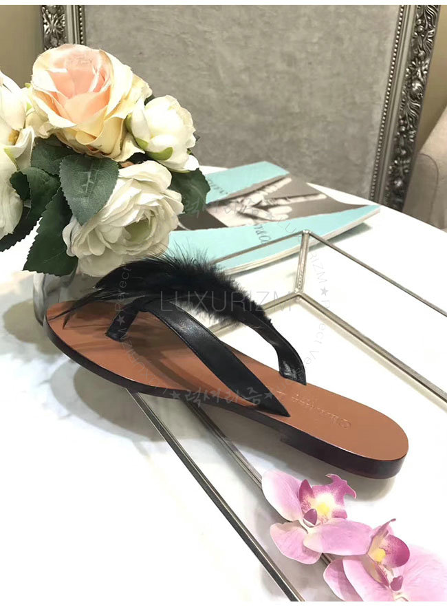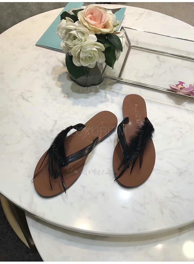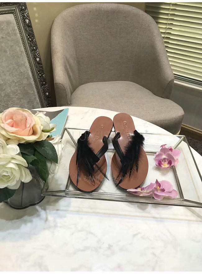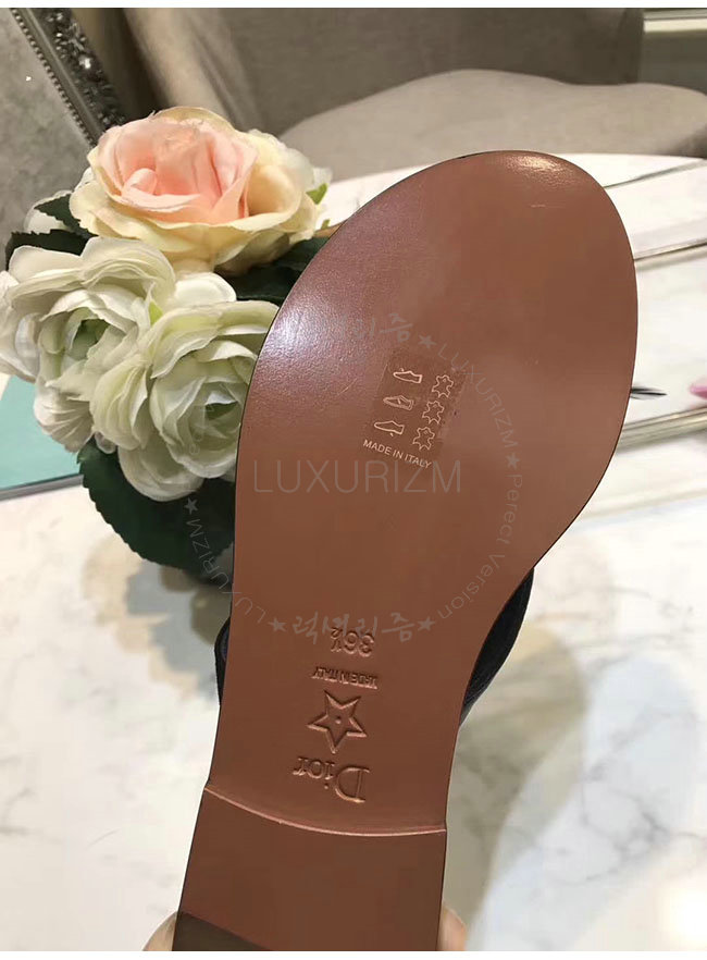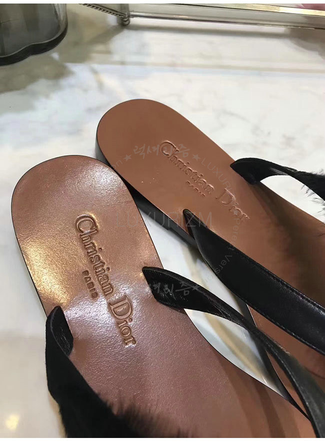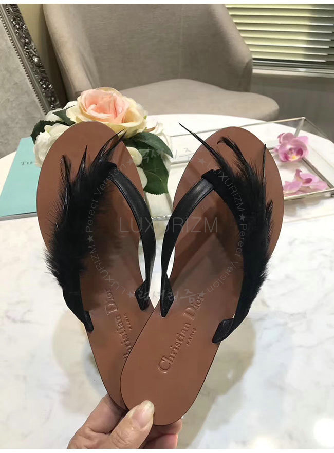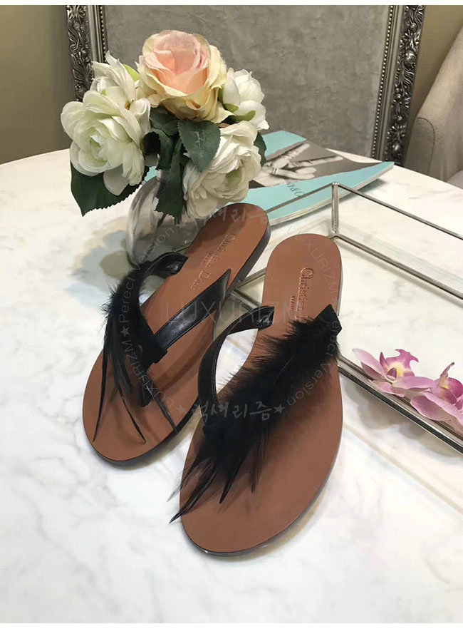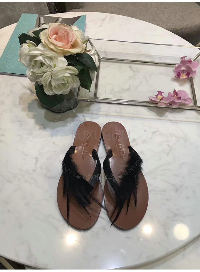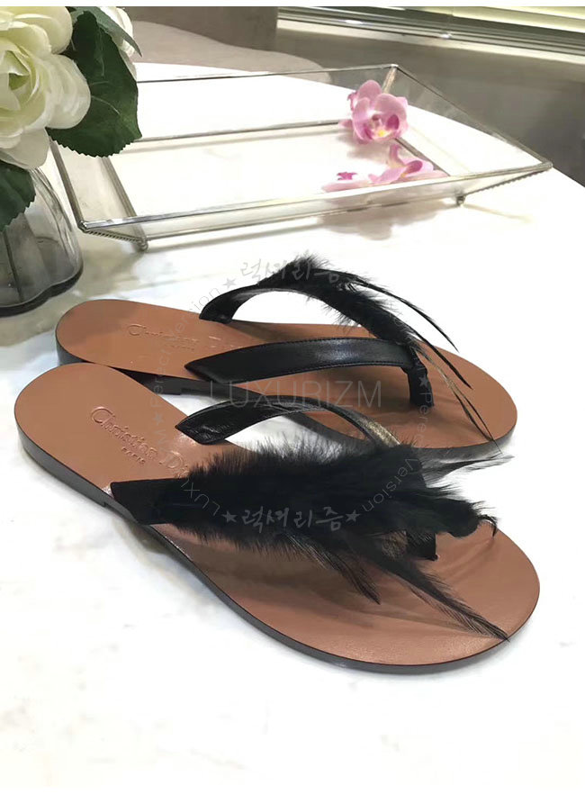DIOR-KCF149 디올 블랙 깃털 송아지 가죽 통 샌들 여성용