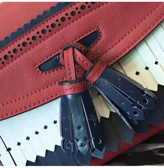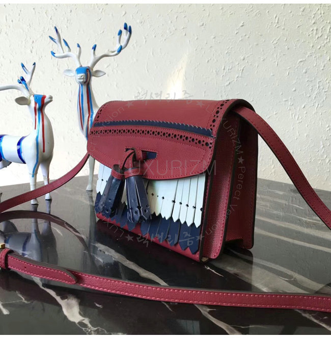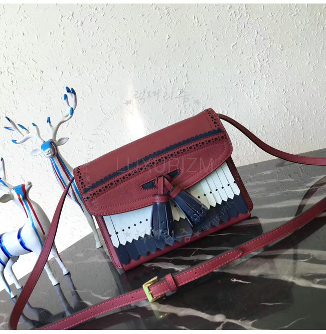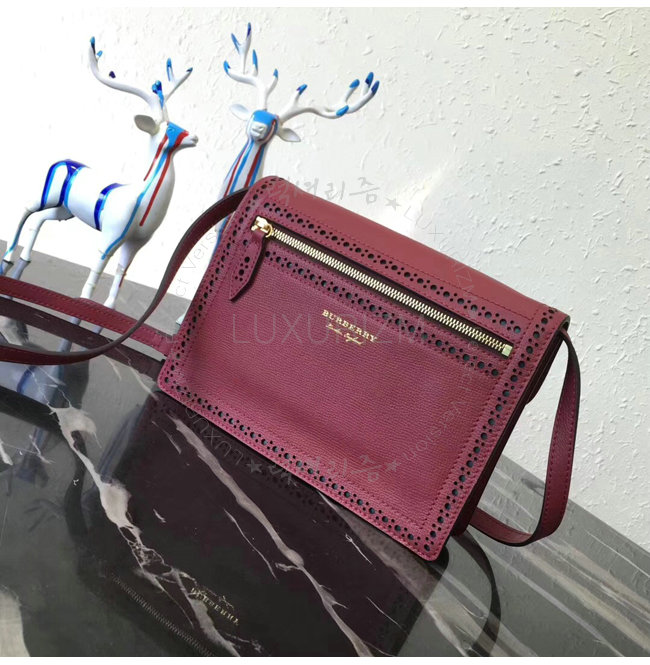 [스페셜오더]BURBERRY-40683441 버버리 송아지 가죽 브로그 프린지 디테일 마호가니 레드 크로스바디 백