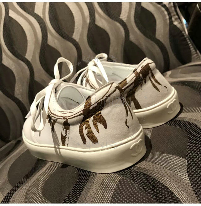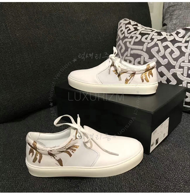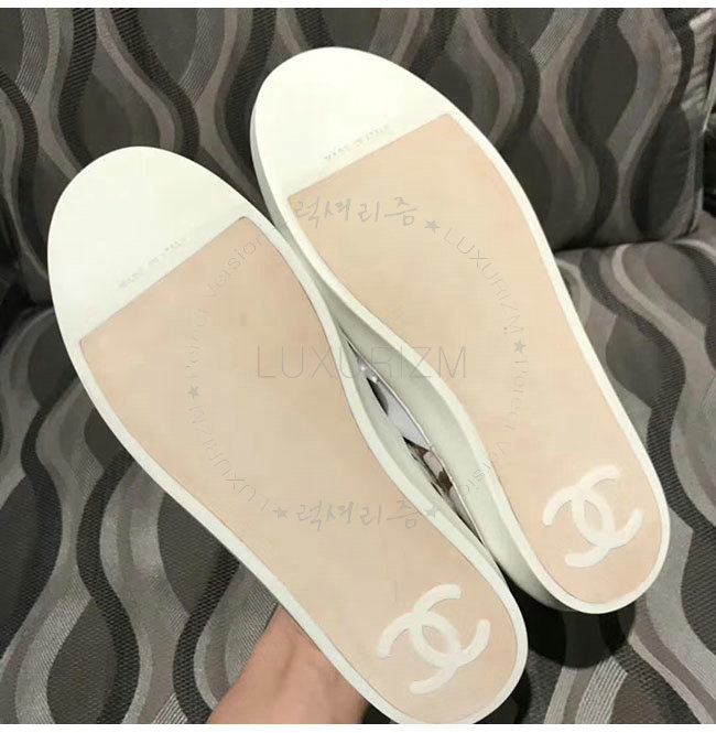CHANEL-G31714 화이트 카프스킨 스니커즈 여성용