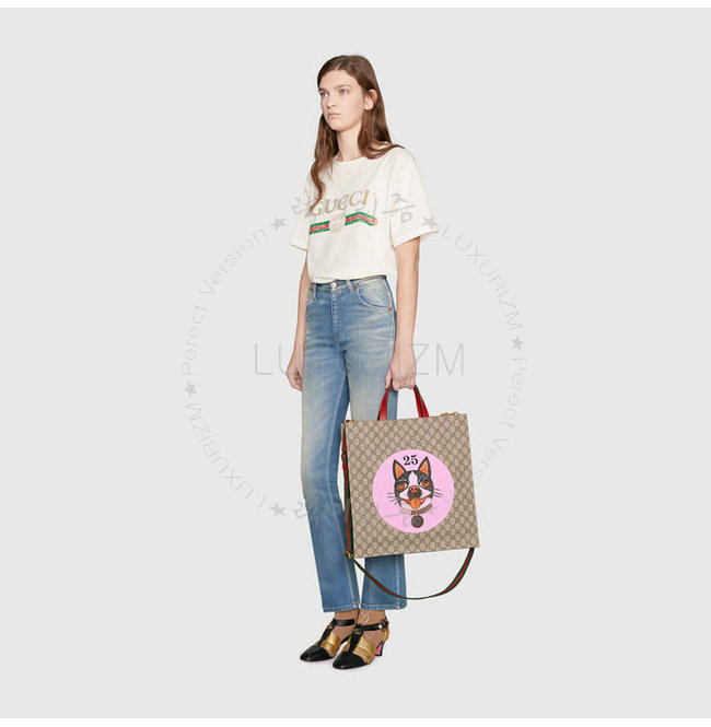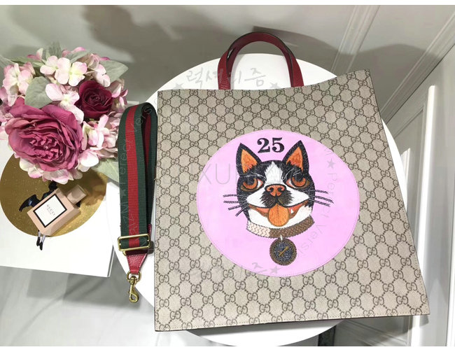 [스페셜오더]GUCCI-450950 8652 구찌 앵그리 캣 프린트 GG 수프림 캔버스 토트 백