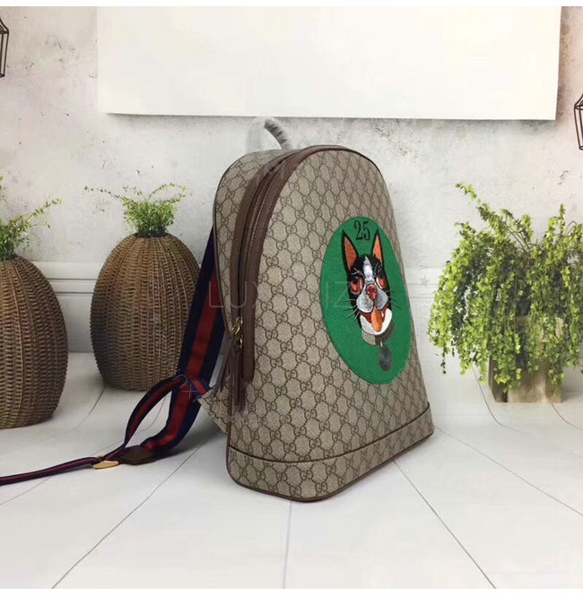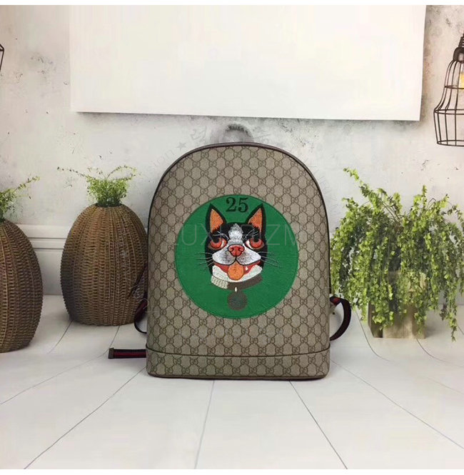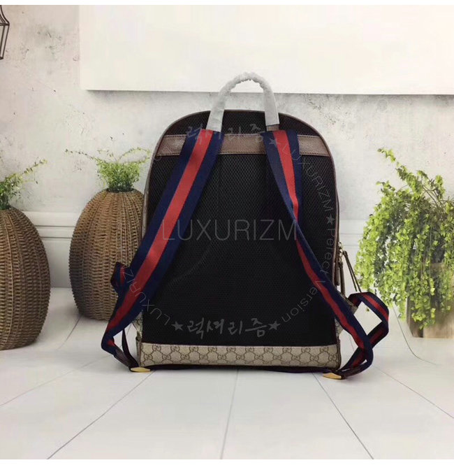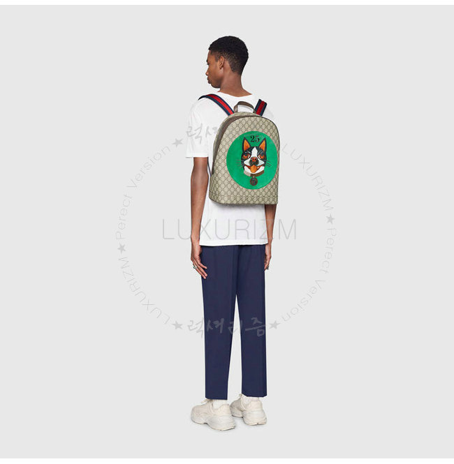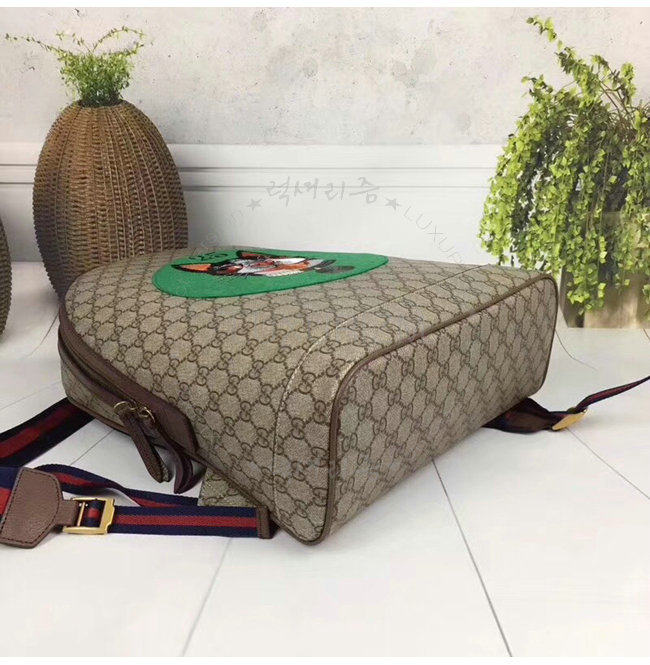 GUCCI-505372 8741 구찌 GG 수프림 캔버스 그린 보스코 패치 장식 백팩