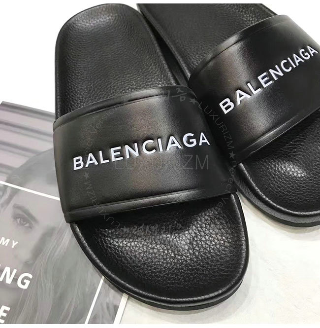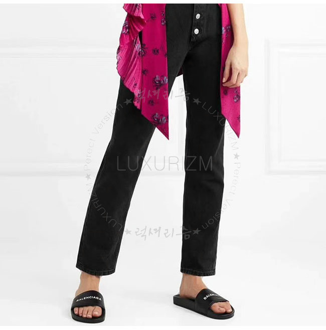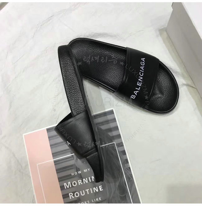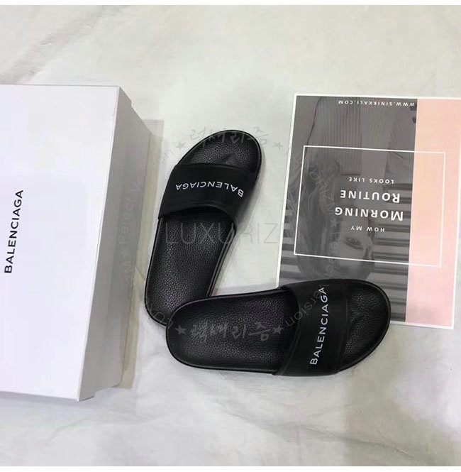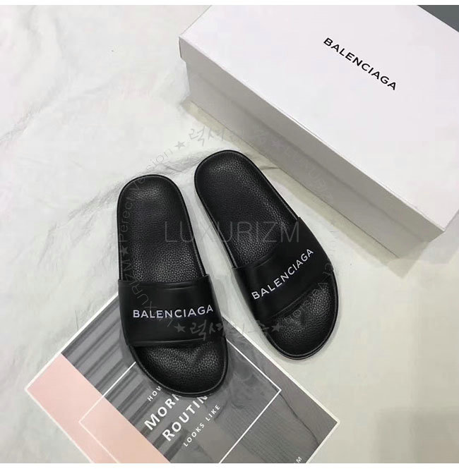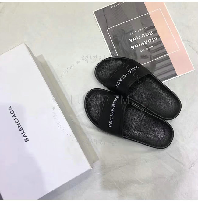 BALENCIAGA-506347 발렌시아가 블랙 카프스킨 파이신 플랫 샌들 남녀공용
