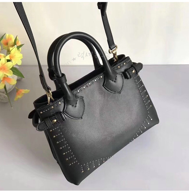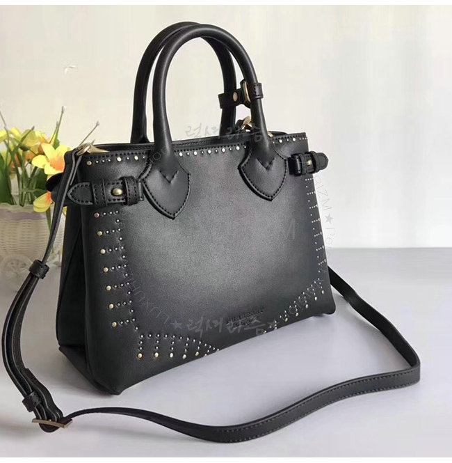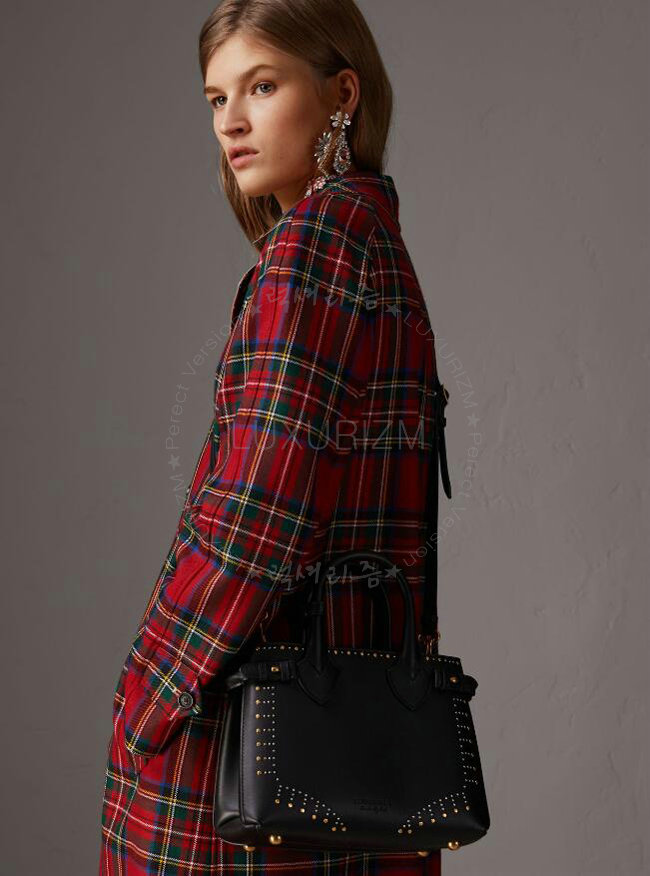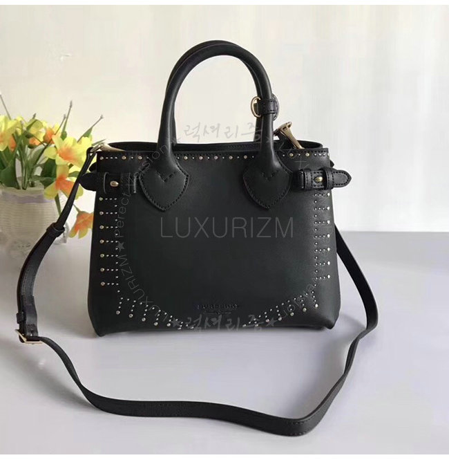 [스페셜오더]BURBERRY-40694481 버버리 송아지 가죽 리벳 장식 블랙 스몰 배너