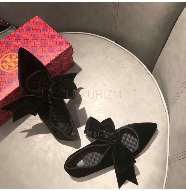 TORY BURCH-7YK2L 토리버치 블랙 벨벳 클라라 발레리나 플랫 여성용