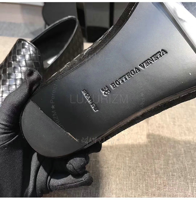 [스페셜오더]BOTTEGAVENETA-324658 보테가 베네타 블랙 인트레치아토 카프 피안드라 슬리퍼 남성용 가격 : 300,000원