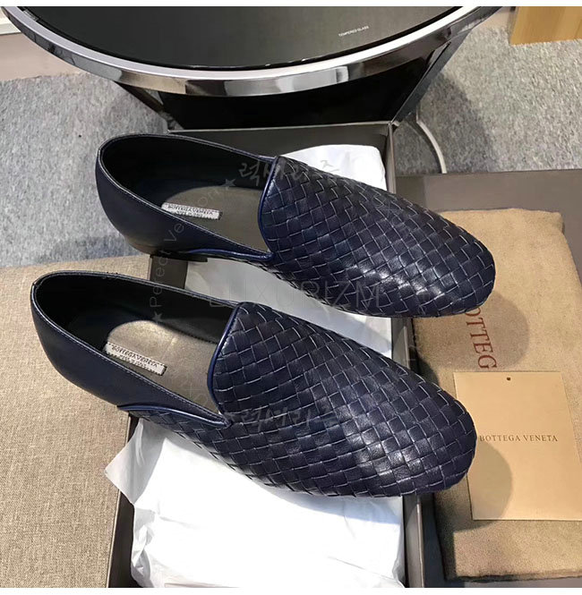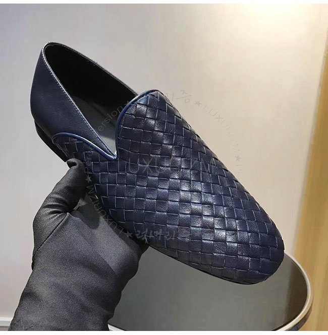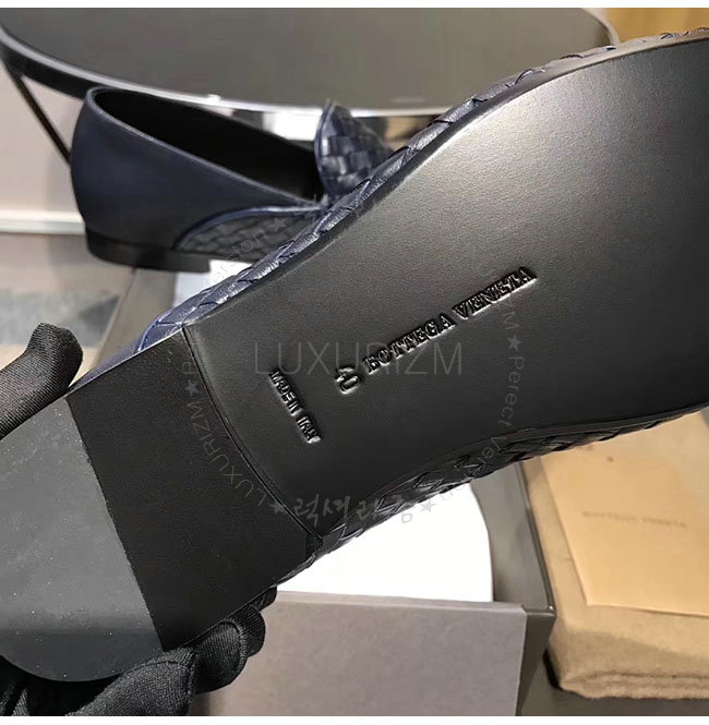 [스페셜오더]BOTTEGAVENETA-475175 보테가 베네타 네이비 인트레치아토 카프 피안드라 미드 슬리퍼 남성용