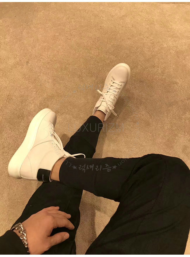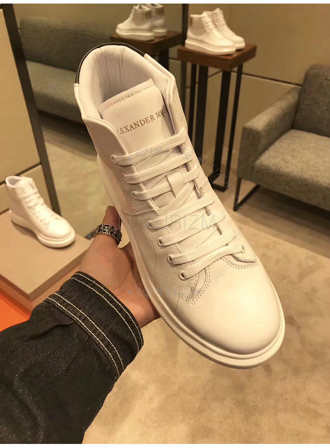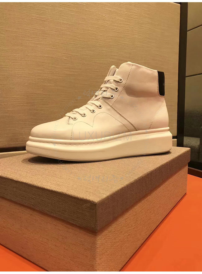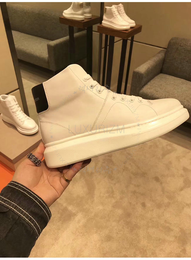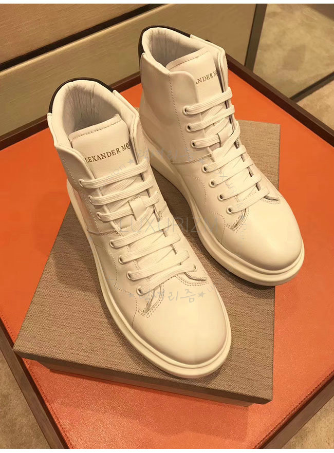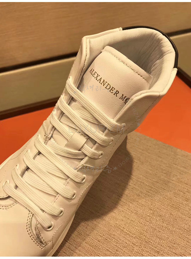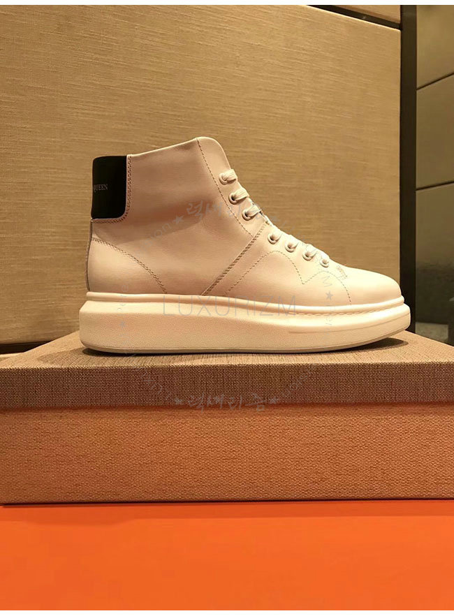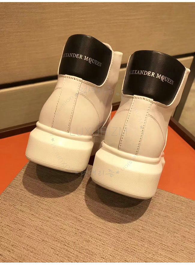 ALEXANDER MCQUEEN-493584 알렉산더 맥퀸 오버솔 화이트 블랙 가죽 하이탑 런닝화 남성용